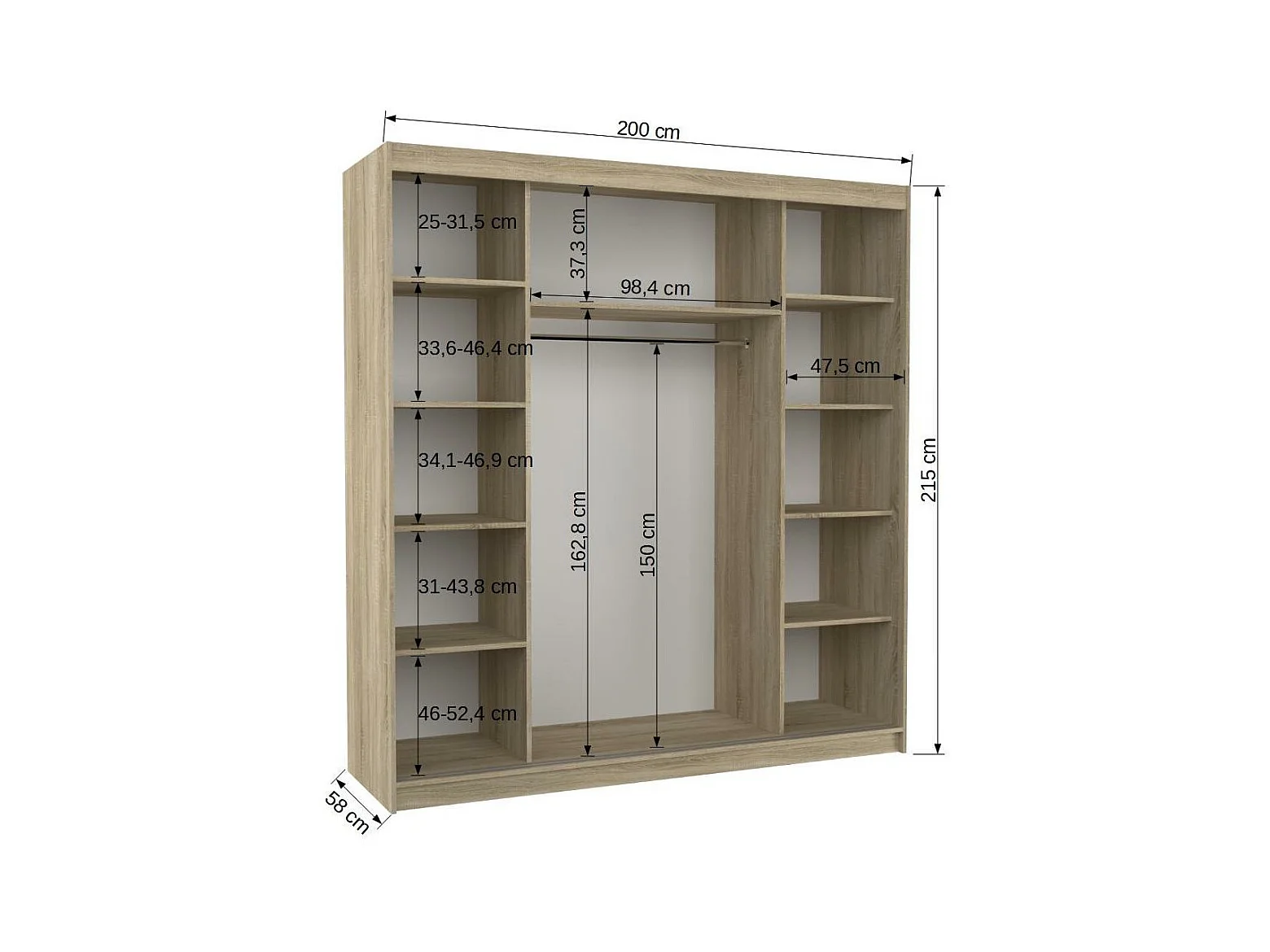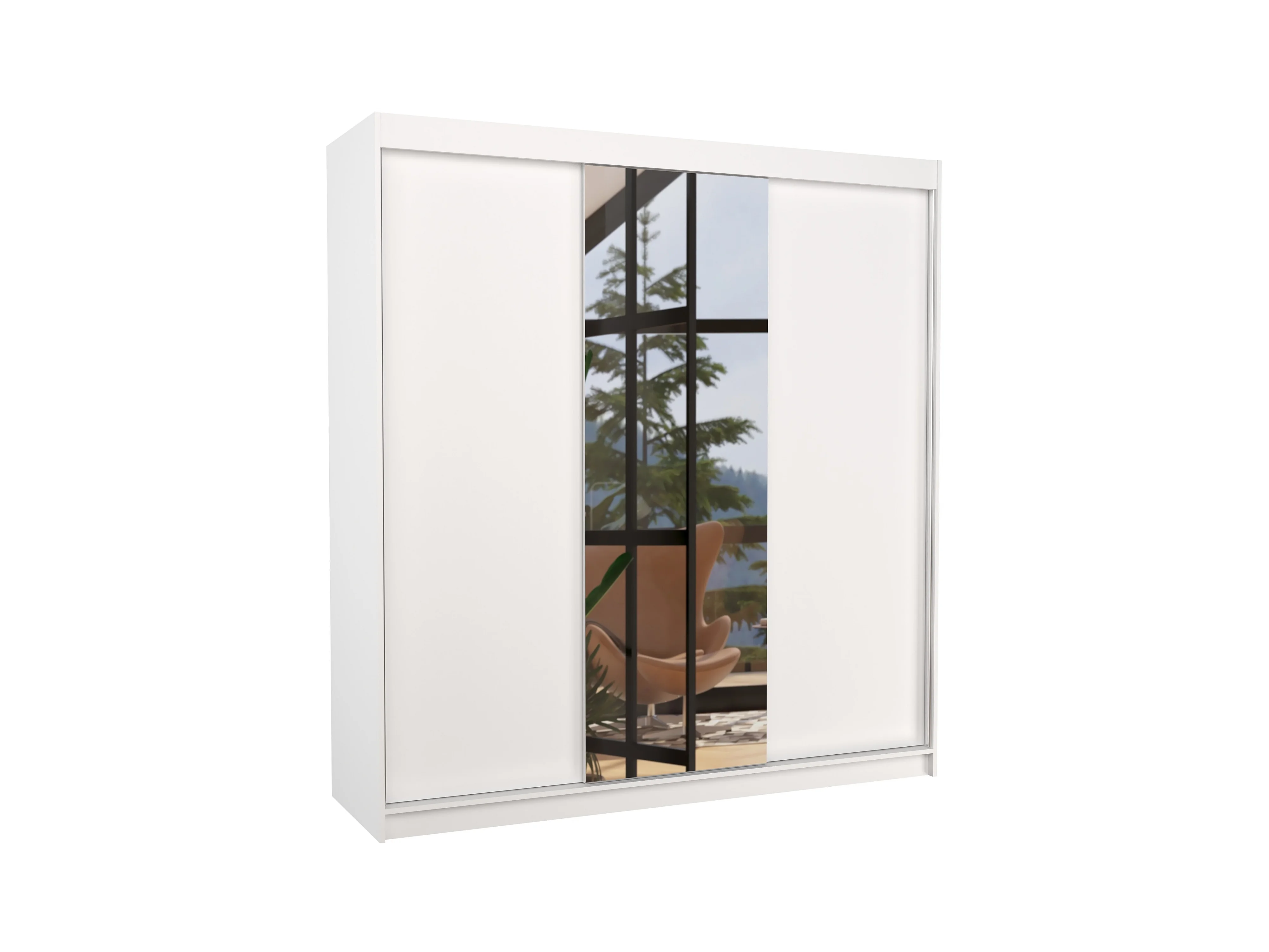 Armoire chambre adulte 2 portes coulissantes bois blanc et miroir Zafa 200cm