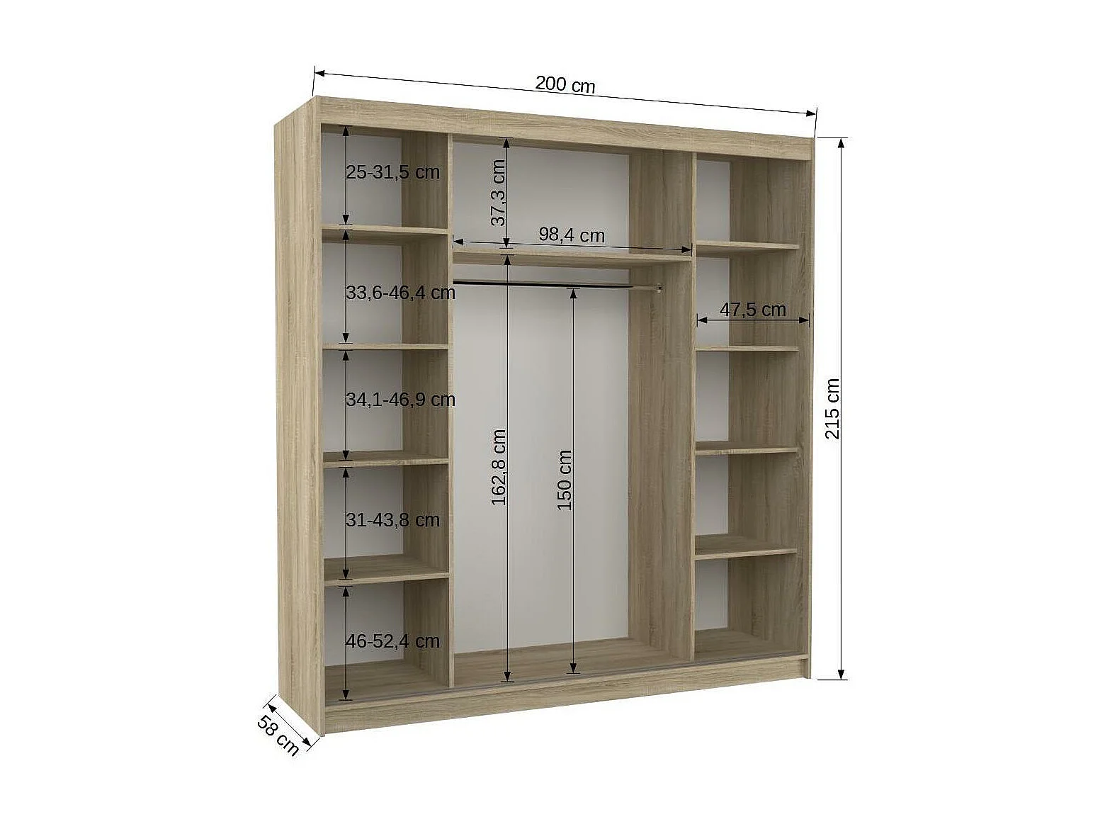 Armoire chambre adulte 2 portes coulissantes bois naturel et blanc avec miroir Zafa 200cm
