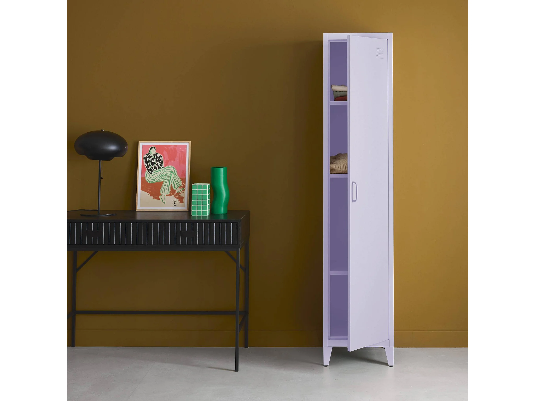 Armoire chambre en acier lilas 4 espaces de rangement. casier