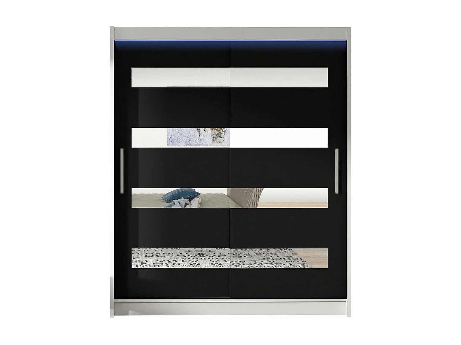 Armoire Closico 136, Noir|Blanc, 200x150x58cm, Portes d'armoire: Coulissantes