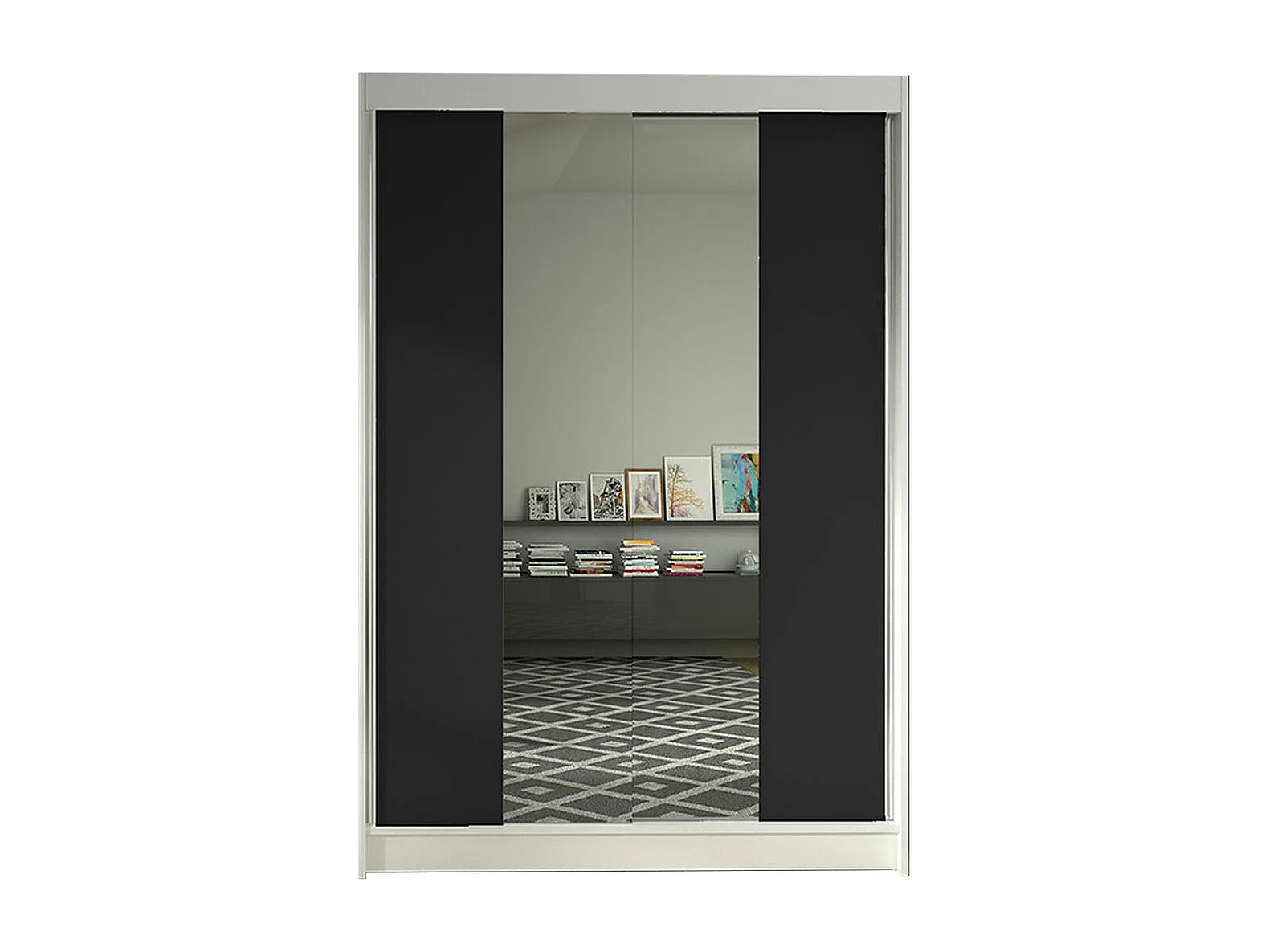 Armoire Closico 148, Noir|Blanc, 200x120x58cm, Portes d'armoire: Coulissantes