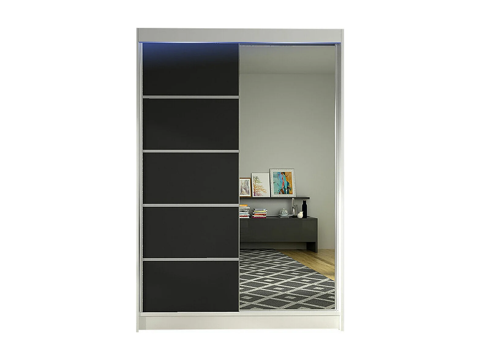 Armoire Closico 149, Noir|Blanc, 200x120x58cm, Portes d'armoire: Coulissantes