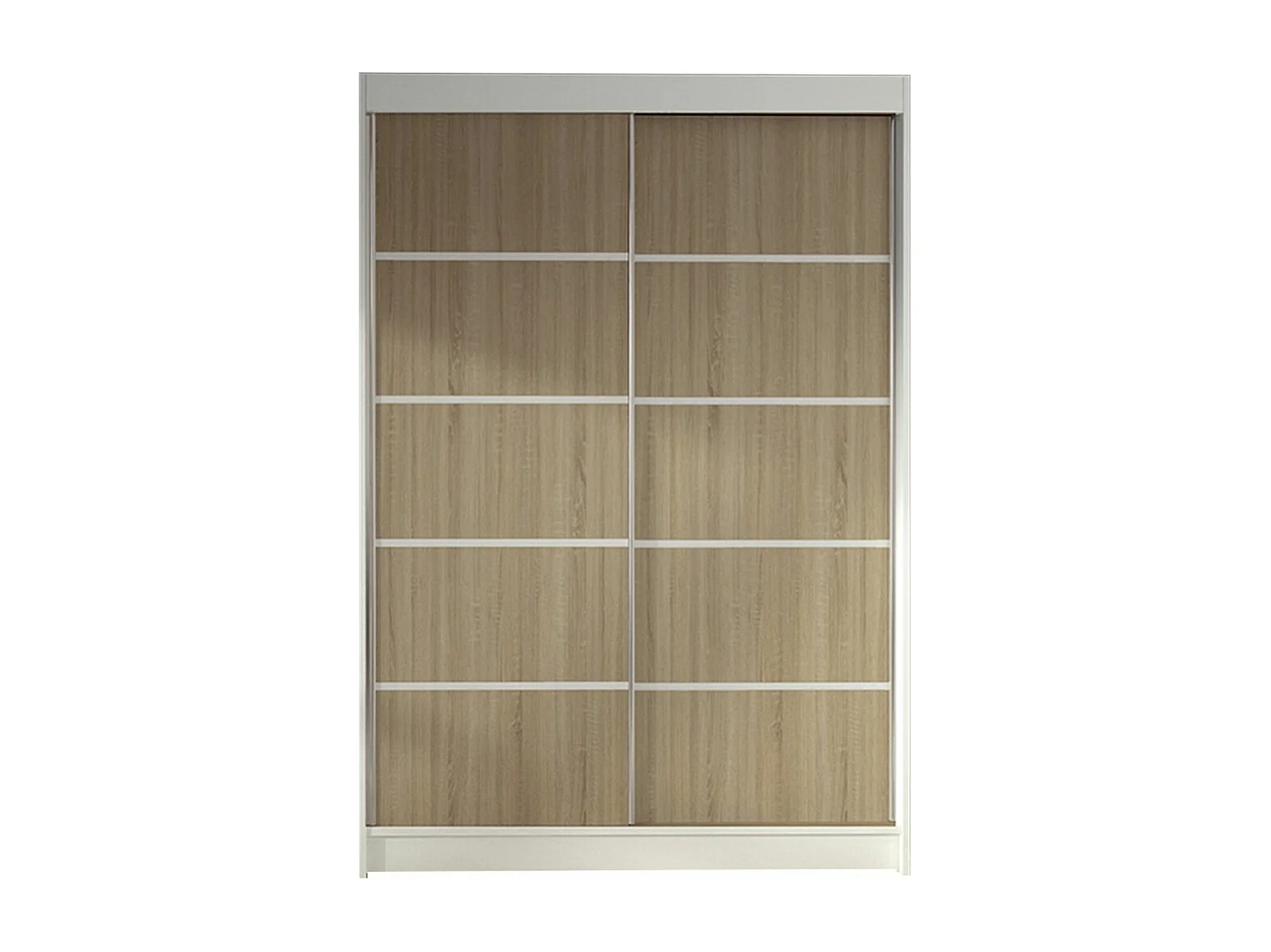 Armoire Closico 150, Sonoma chêne|Blanc, 200x120x58cm, Portes d'armoire: Coulissantes