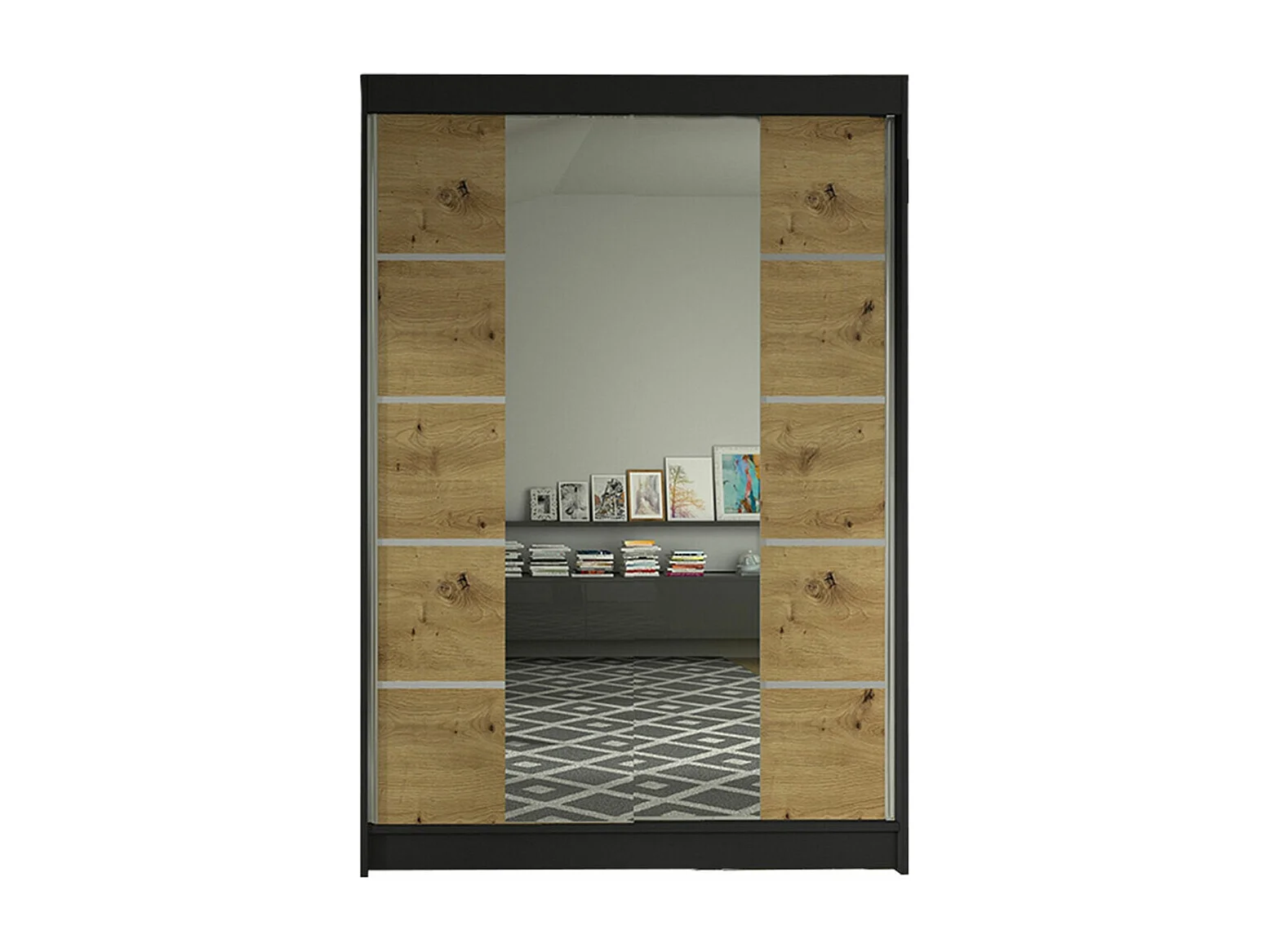 Armoire Closico Salvor V, Noir|Chêne Artisan, 200x120x58cm, Nombre d'étagères: 5