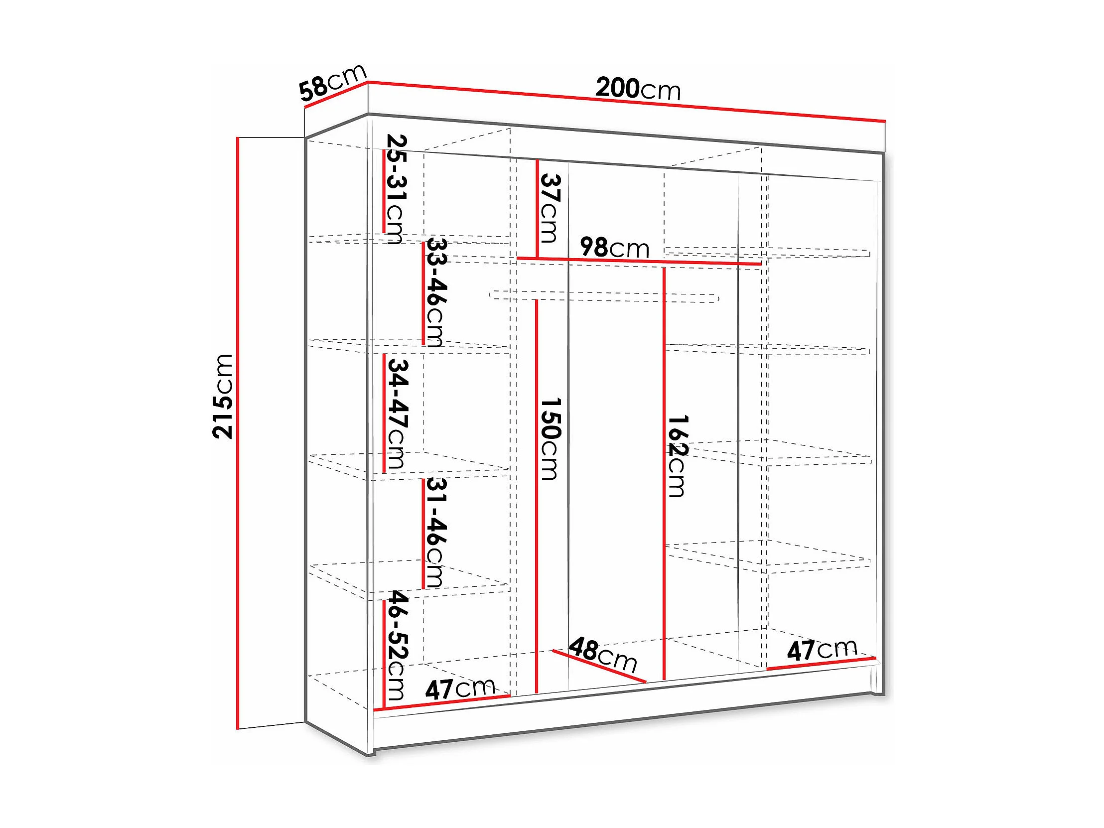Armoire Closico 159, Noir|Blanc, 215x200x58cm, Portes d'armoire: Coulissantes