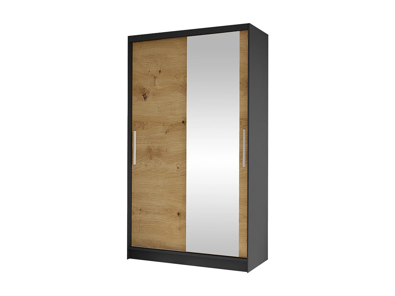 Armoire Closico 164, Chêne Artisan|Noir, 200x100x58cm, Portes d'armoire: Coulissantes