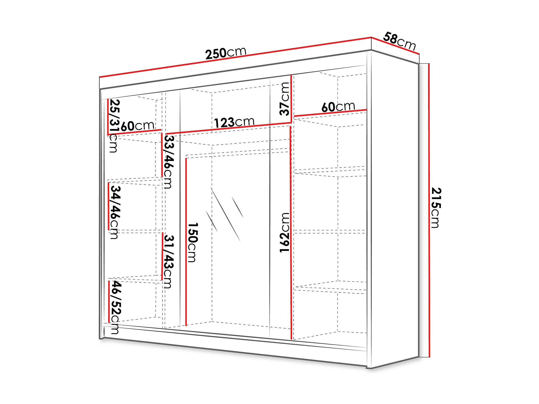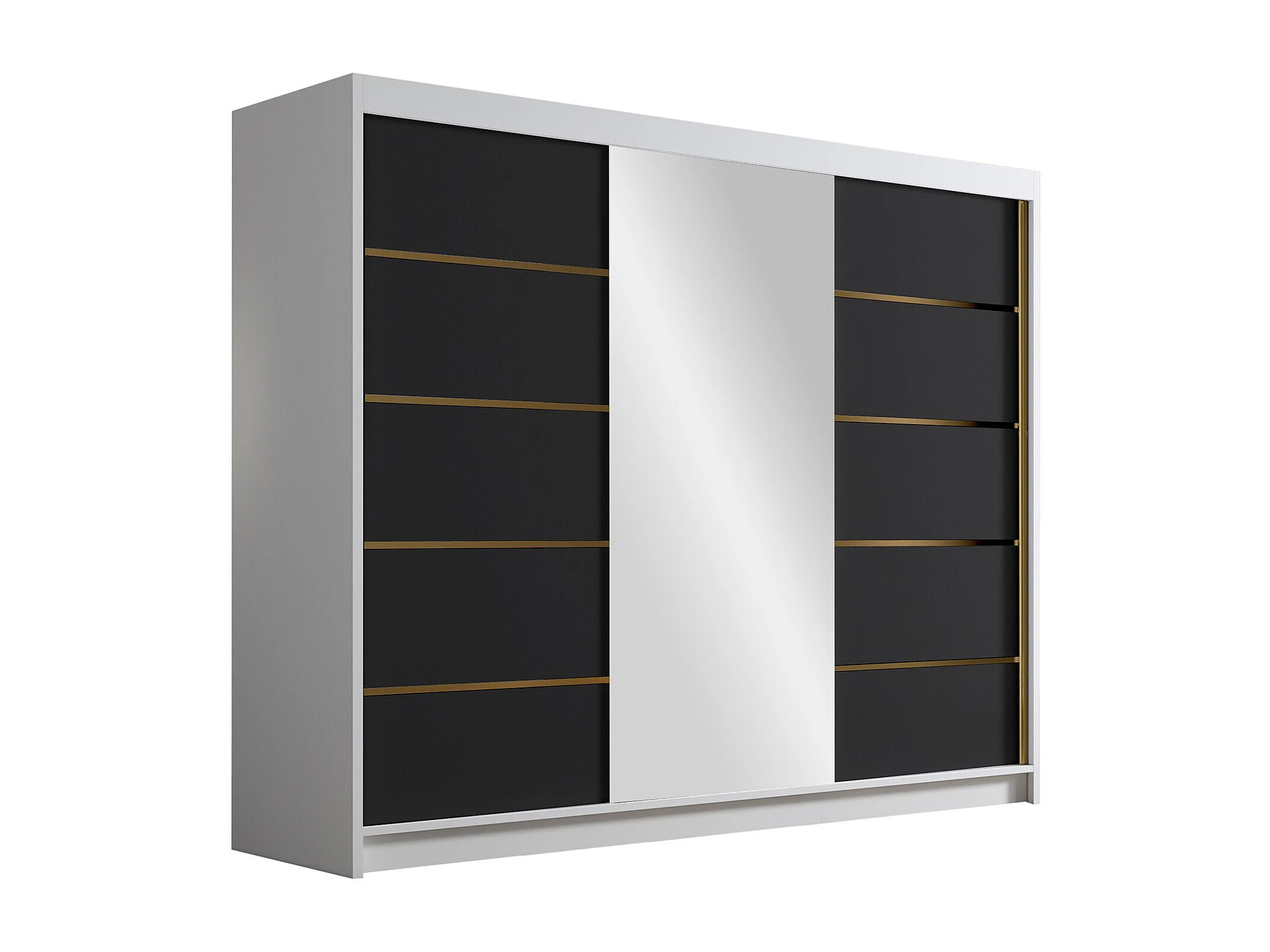 Armoire Closico Veltron II, Noir|Blanc, 215x250x58cm, Portes d'armoire: Coulissantes