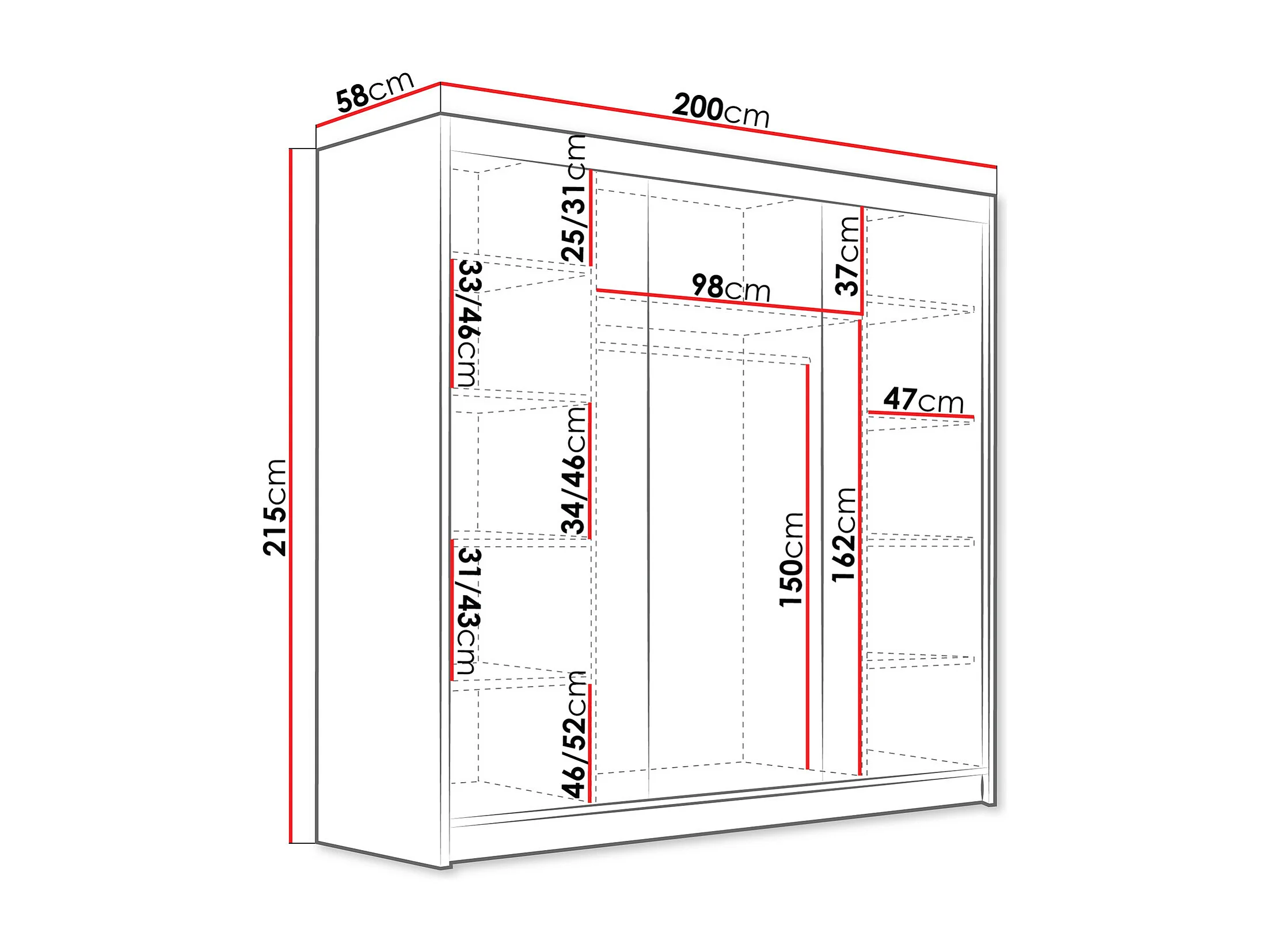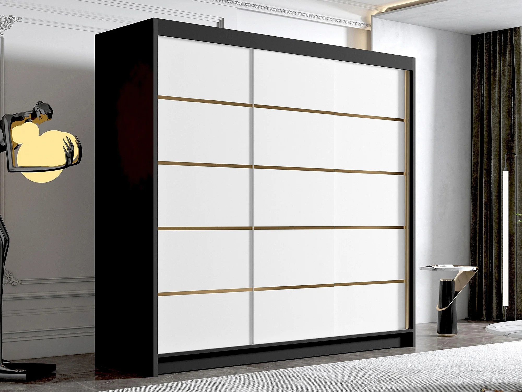 Armoire Closico Plenor VI, Blanc|Noir, 215x200x58cm, Portes d'armoire: Coulissantes