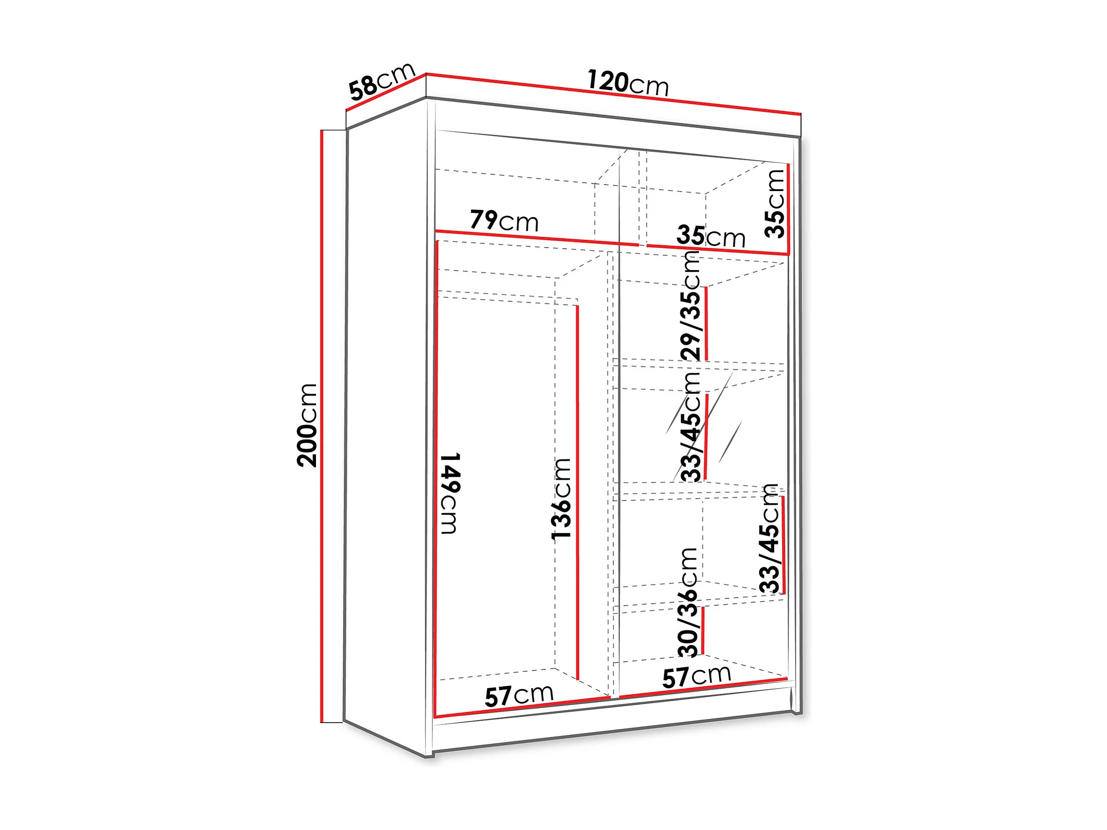 Armoire Closico 188, Noir|Blanc, 200x120x58cm, Portes d'armoire: Coulissantes
