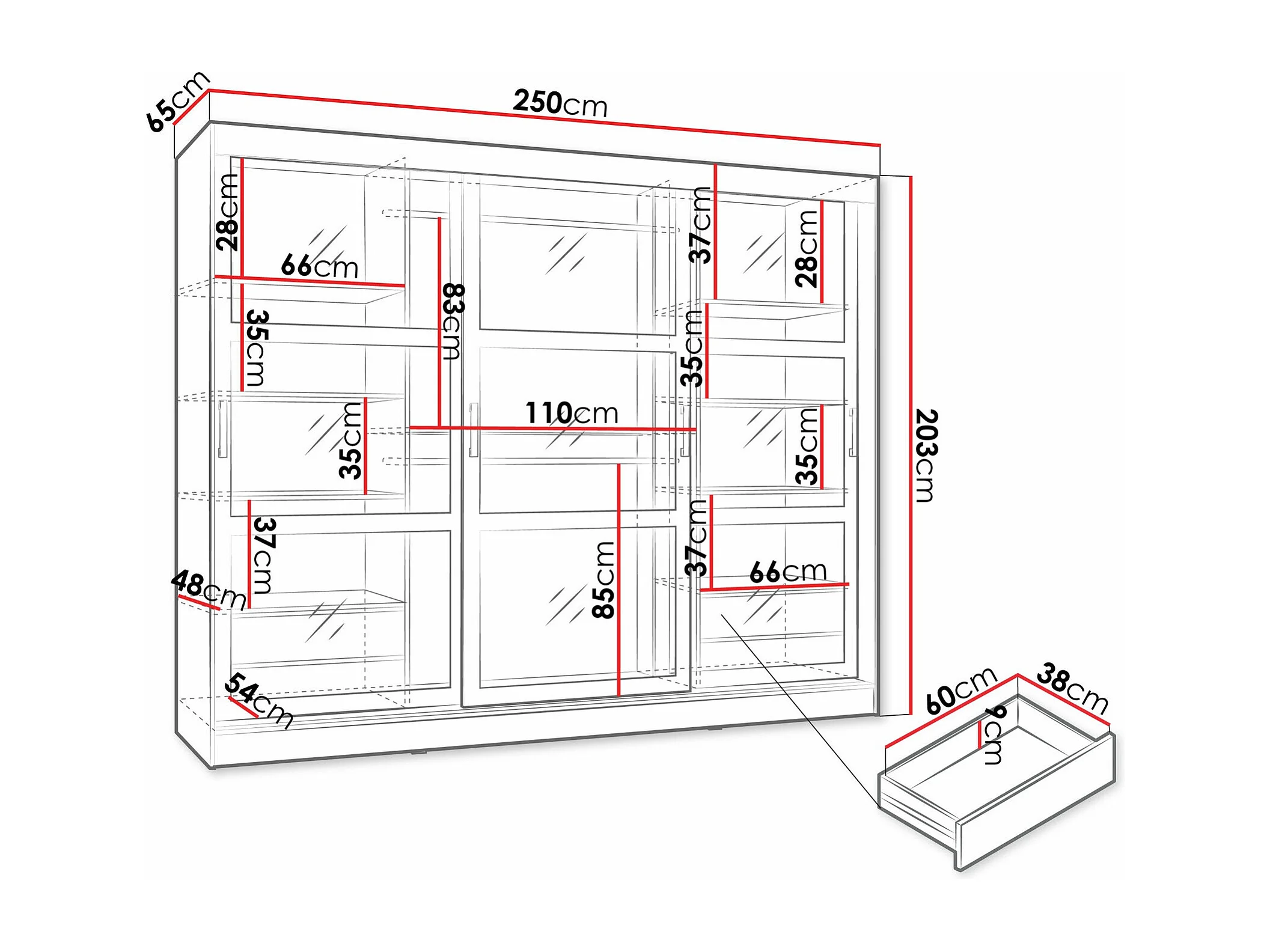 Armoire Comfivo 428, Noir, 203x250x65cm, Portes d'armoire: Coulissantes