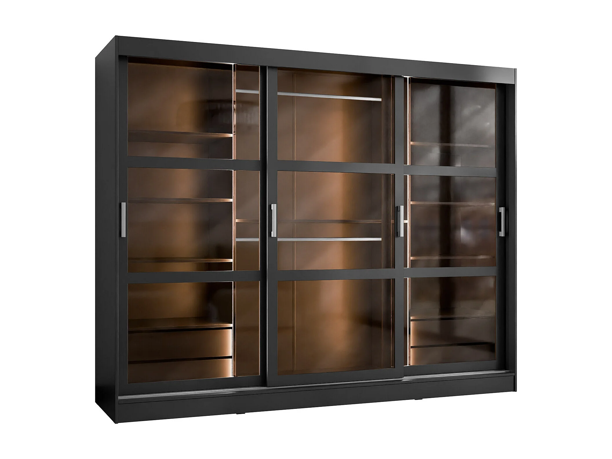 Armoire Comfivo 428, Noir, 203x250x65cm, Portes d'armoire: Coulissantes