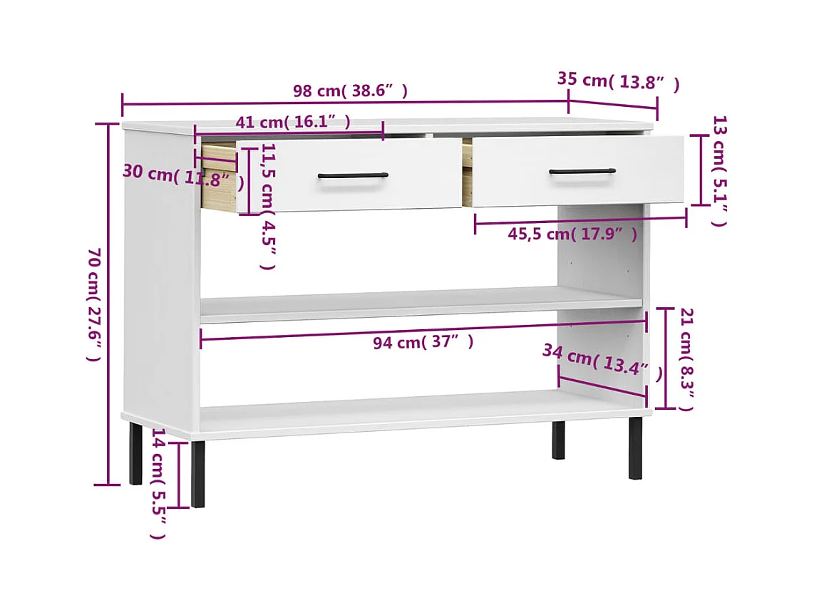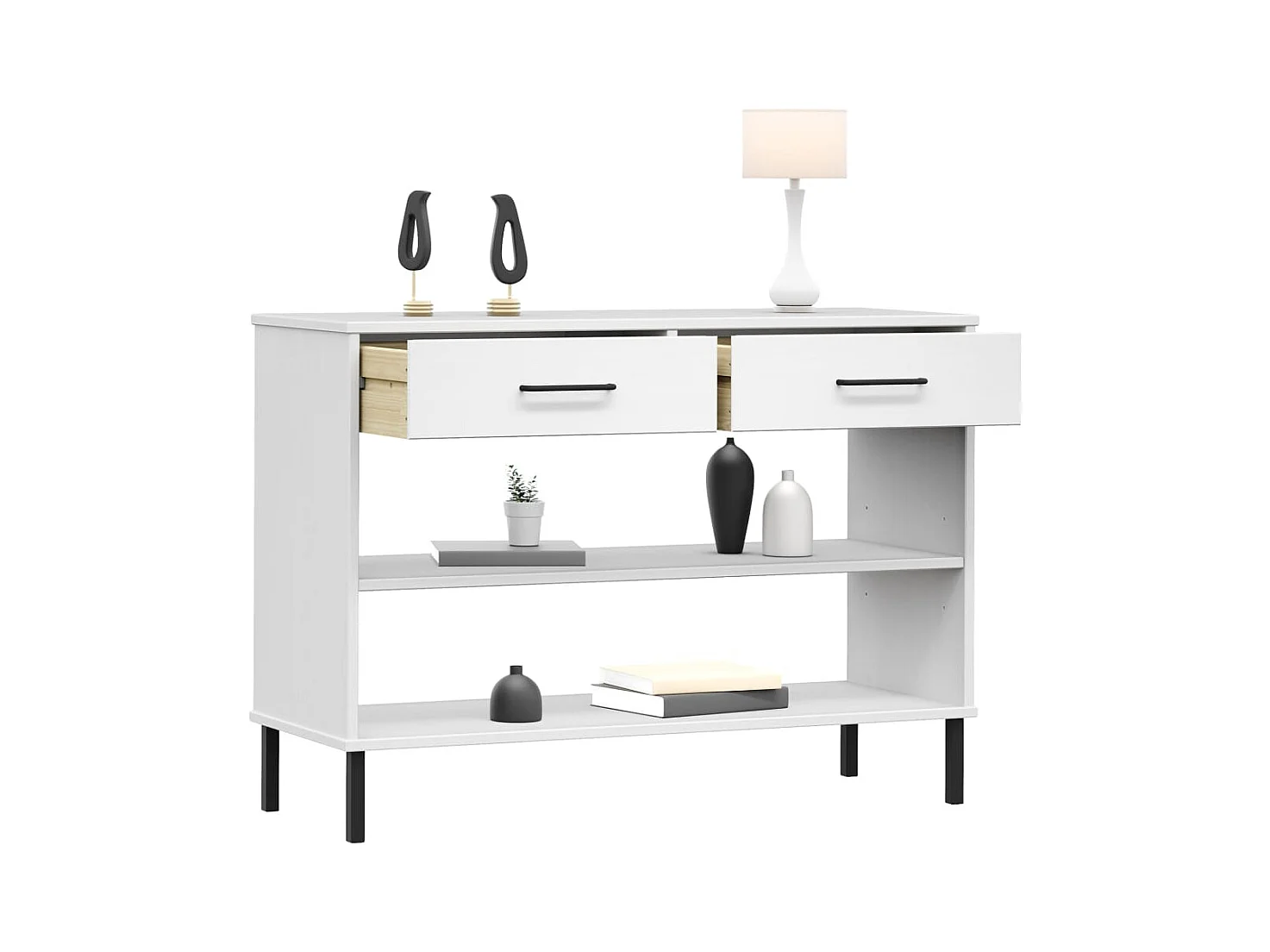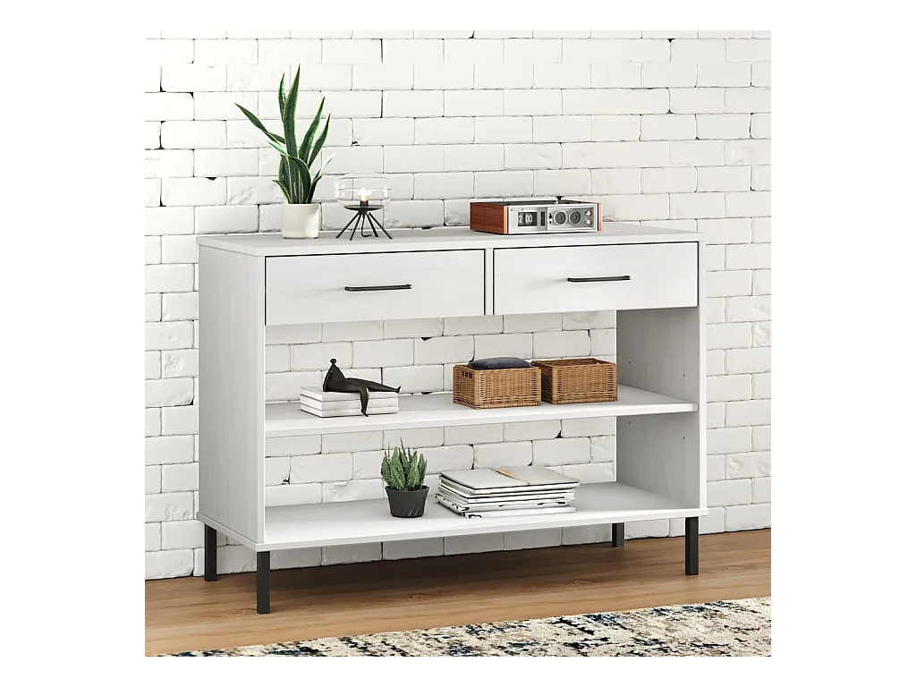 Armoire console avec pieds en métal Blanc Bois pin massif OSLO
