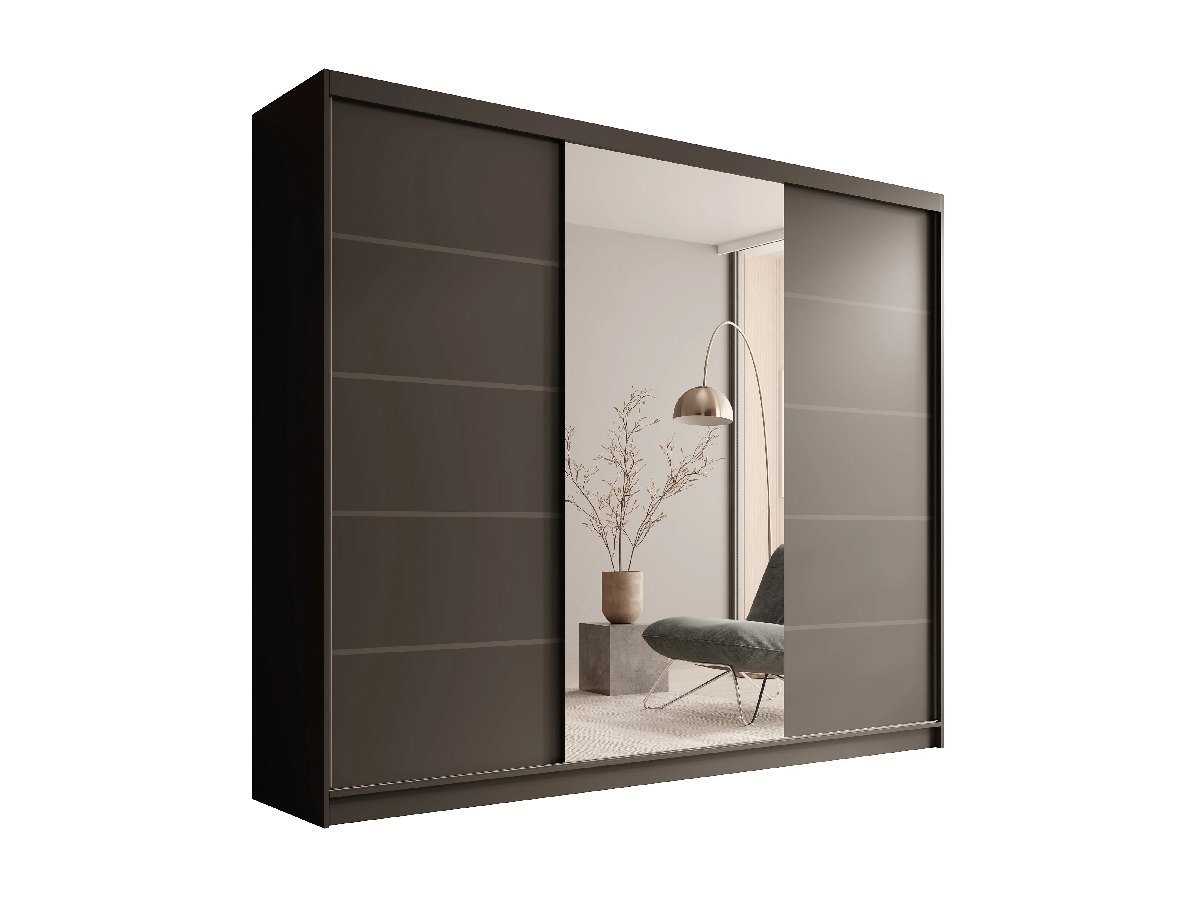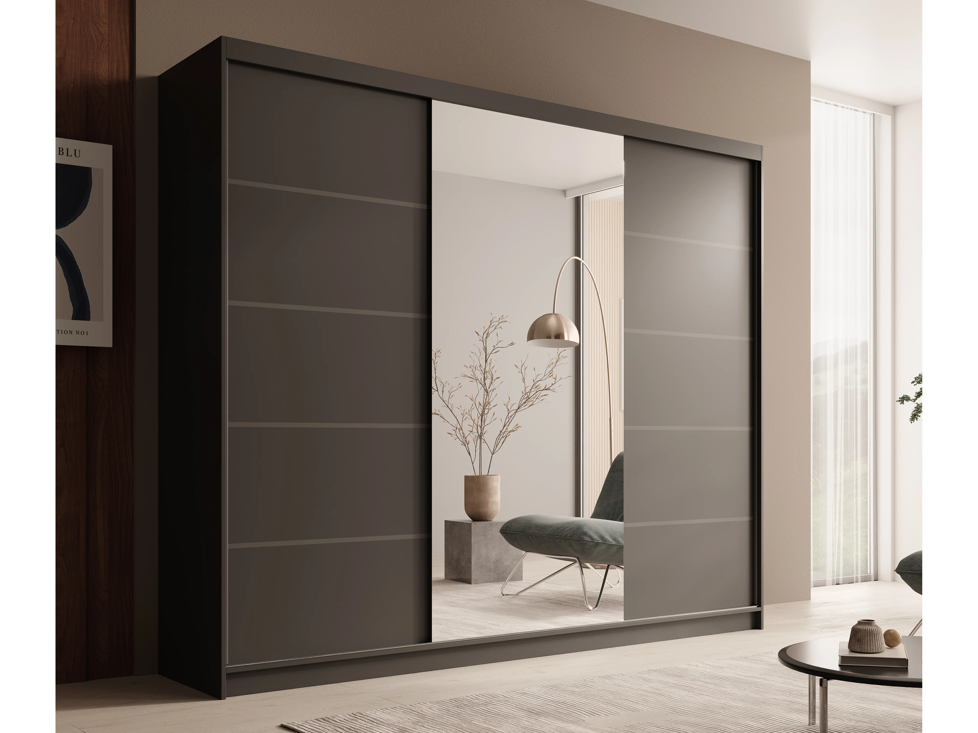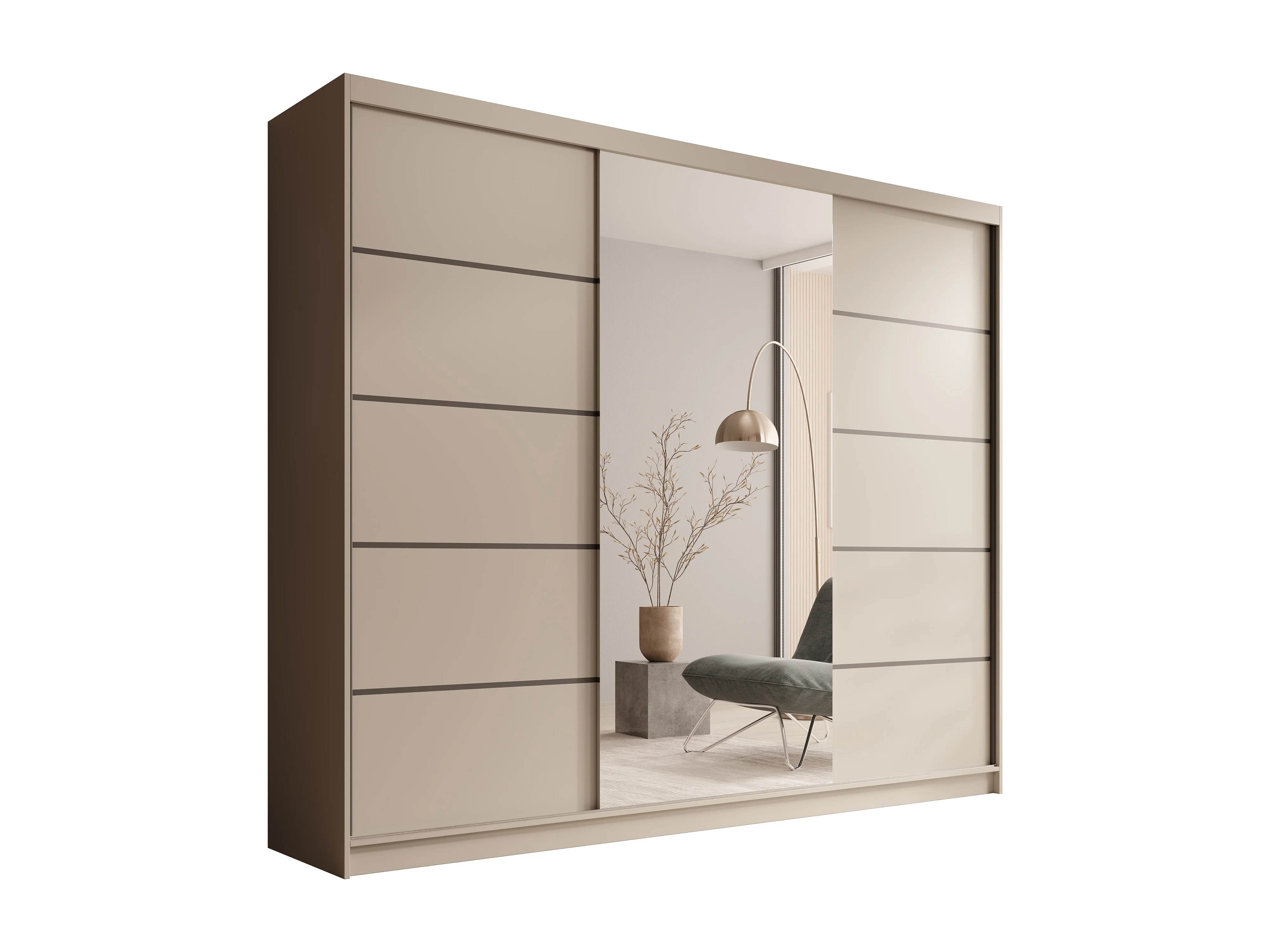 Armoire coulissante 3 portes TENA 250 avec miroir– Design moderne et grande capacité de rangement-Beige