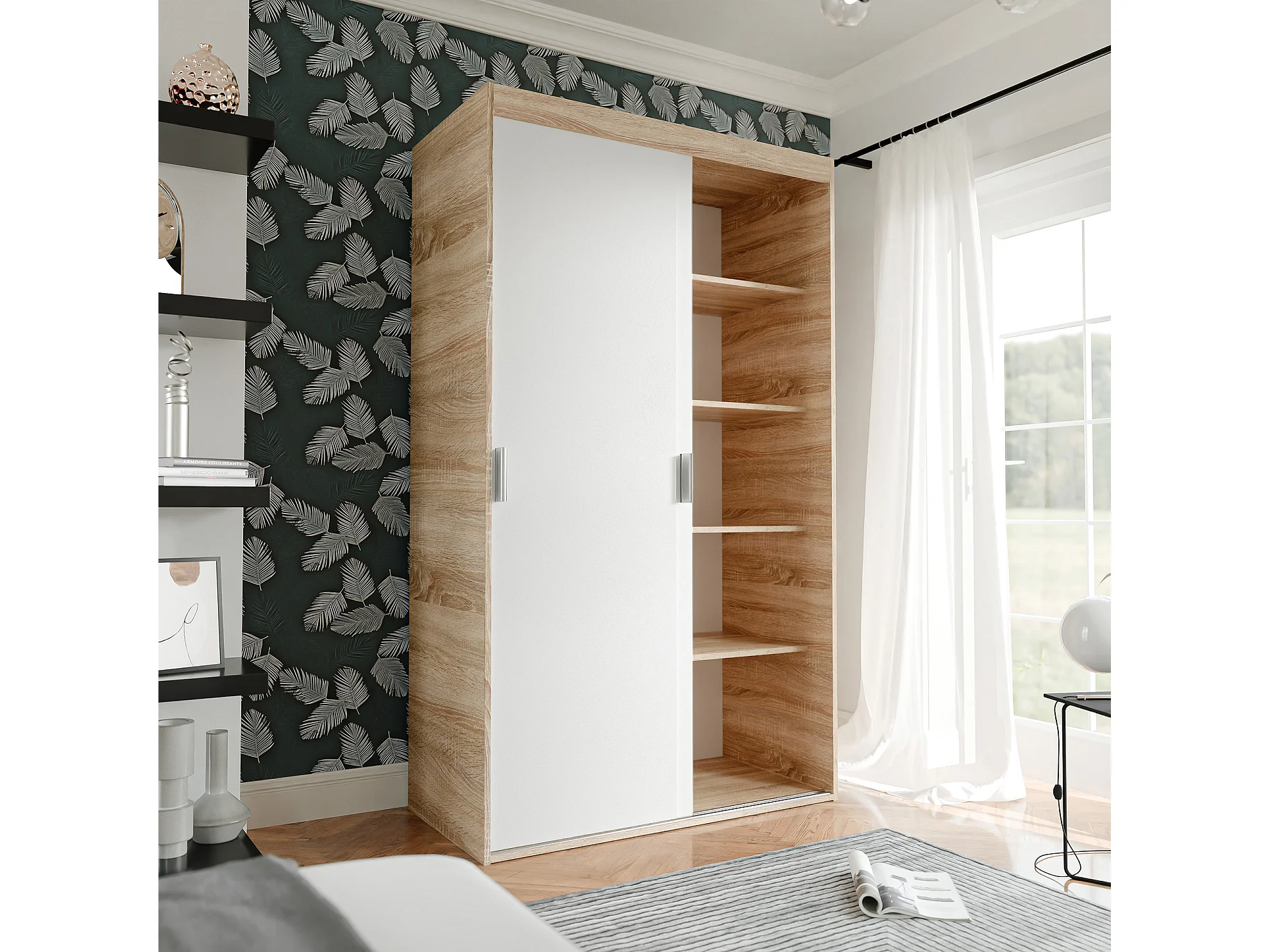 Armoire coulissante à deux portes PEDRI 120 cm – blanc/chêne sonoma