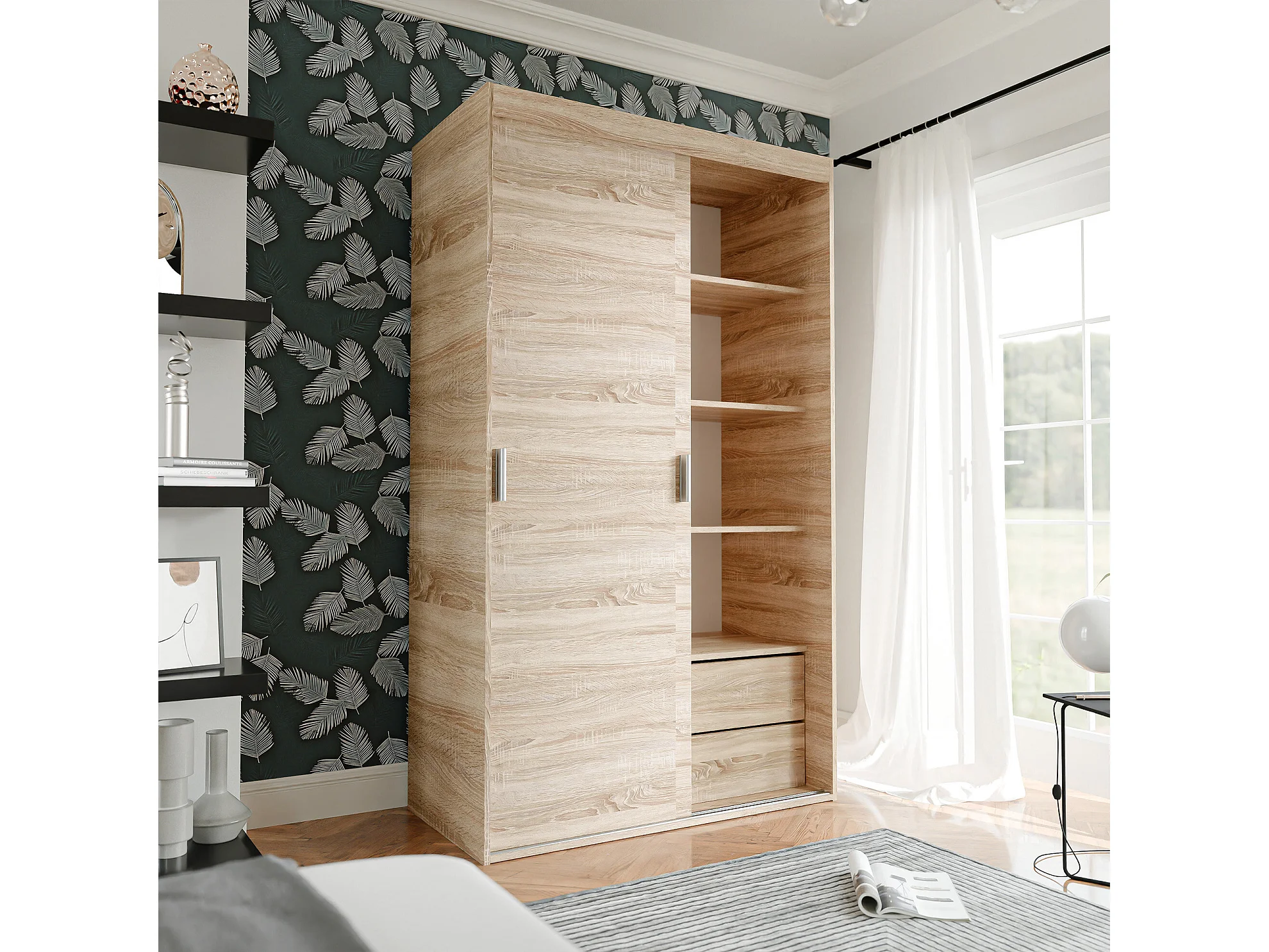 Armoire coulissante à deux portes PEDRI 120 cm couleur chêne sonoma