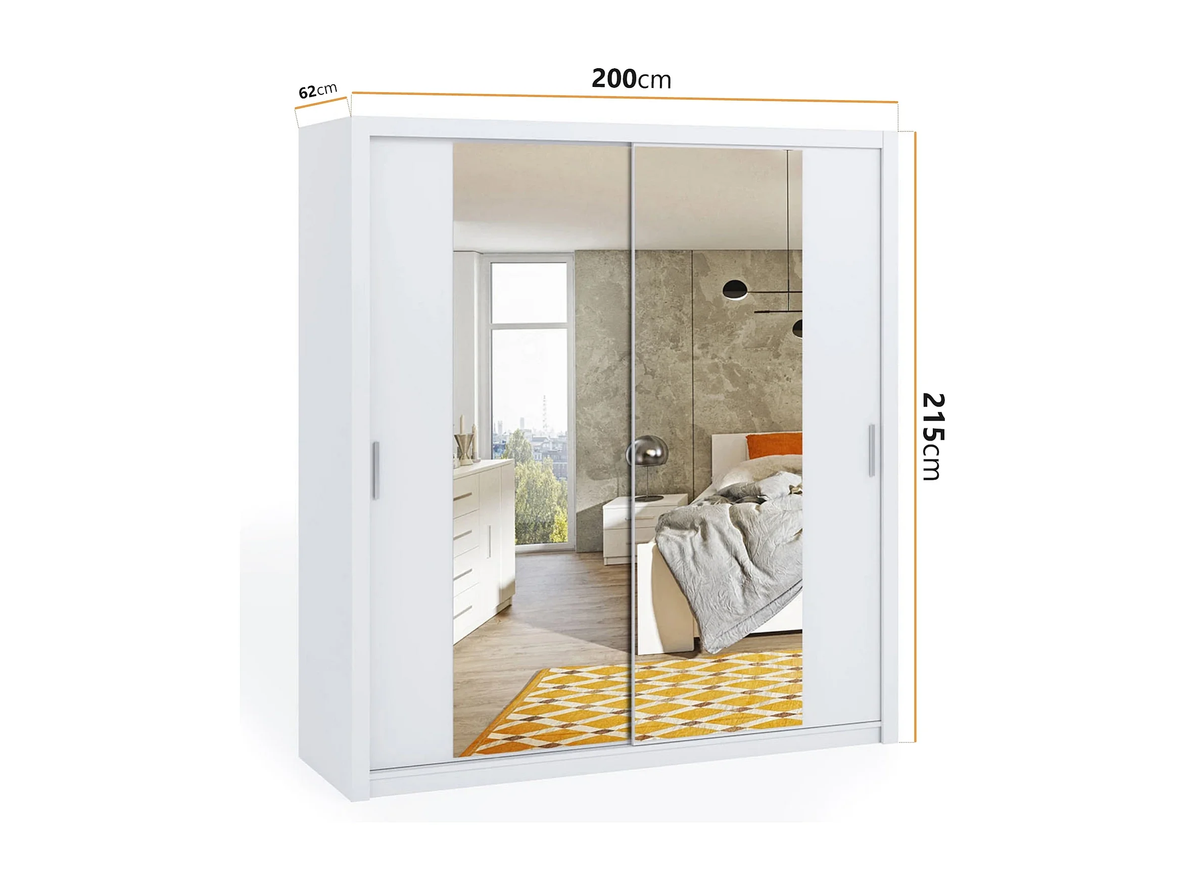 Armoire coulissante avec miroir Tamiza 200 cm - Blanc