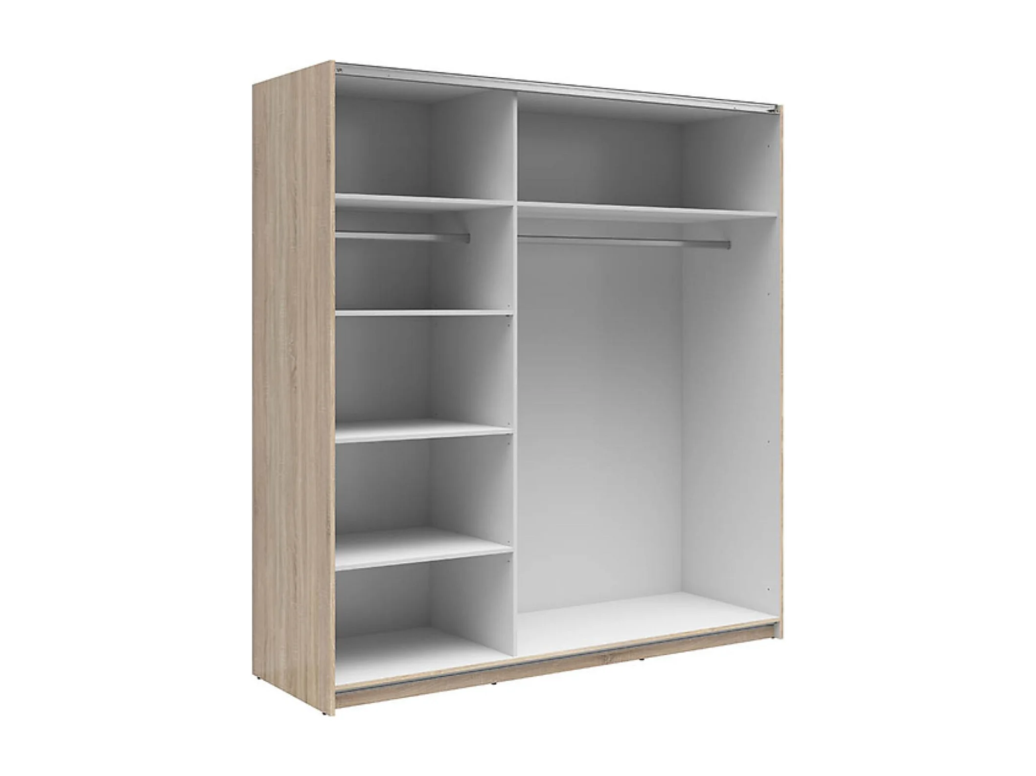 Armoire coulissante Placard avec miroir coloris chêne Sonoma - Longueur 183 x Profondeur 60 x Hauteur 195,5 cm