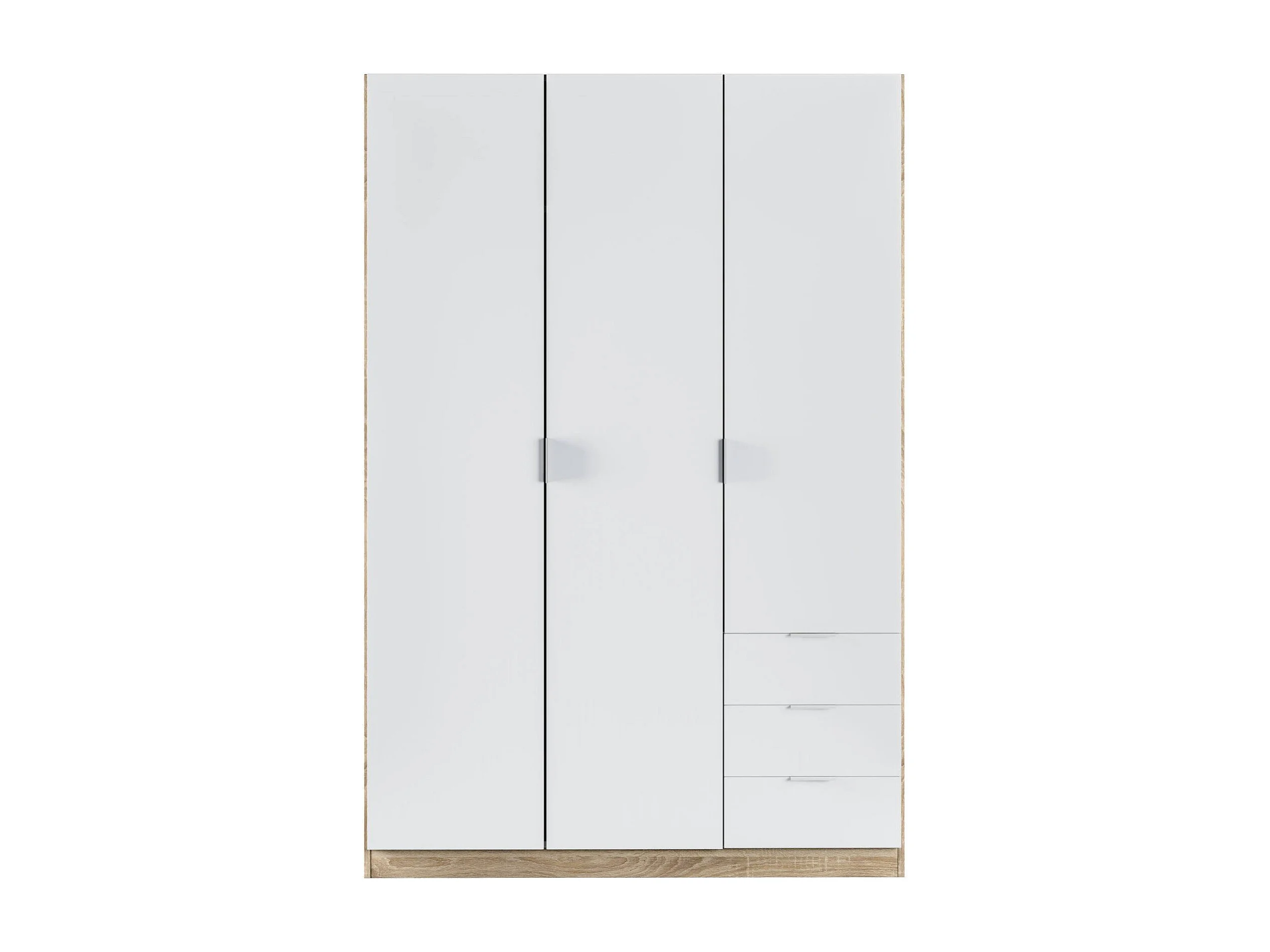 Armoire Daband, Armoire de Chambre avec 3 Portes et 3 Tiroirs, Armoire avec Barre de Suspension et 3 Étagères, 121x52h180 cm, Blanc et Chêne