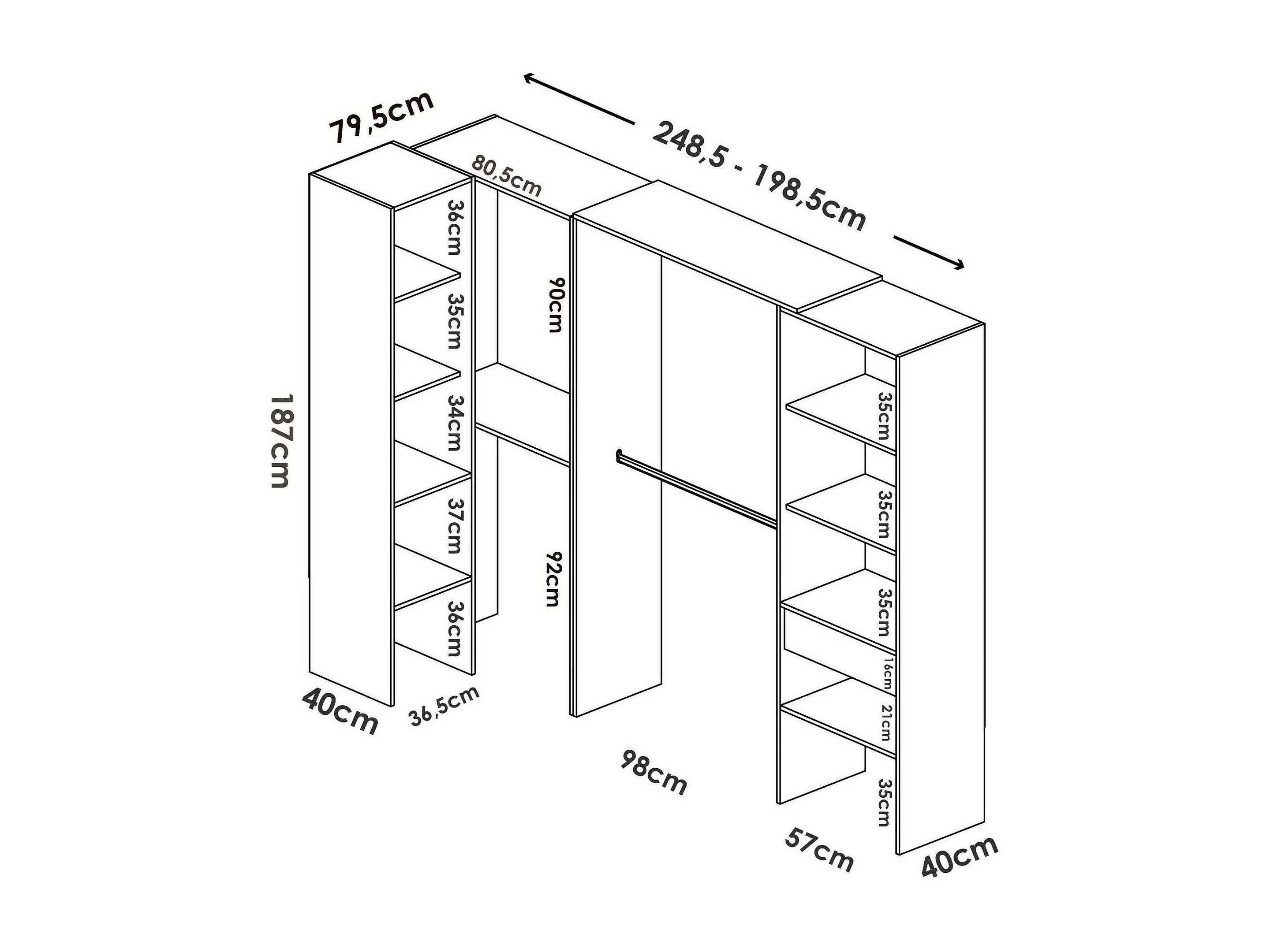 Armoire Dacasuz, Structure pour dressing d'angle, Cintre d'angle ouvert, 248x79h187 cm, Chêne