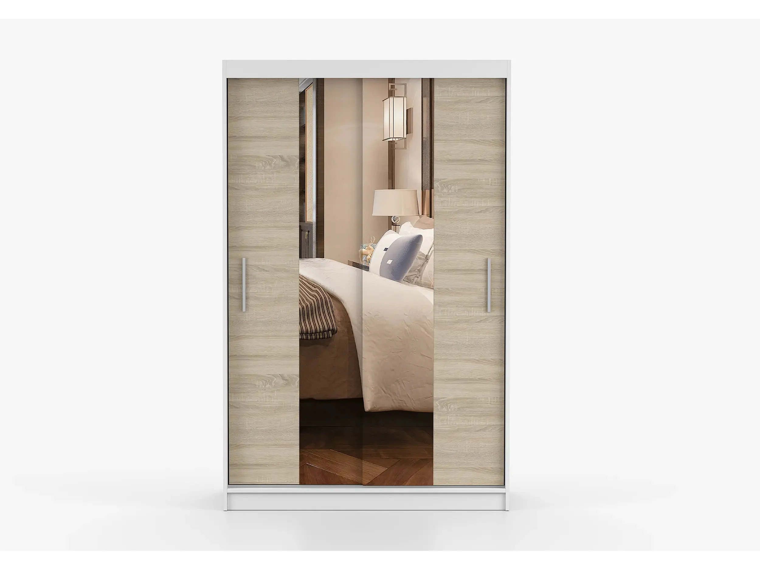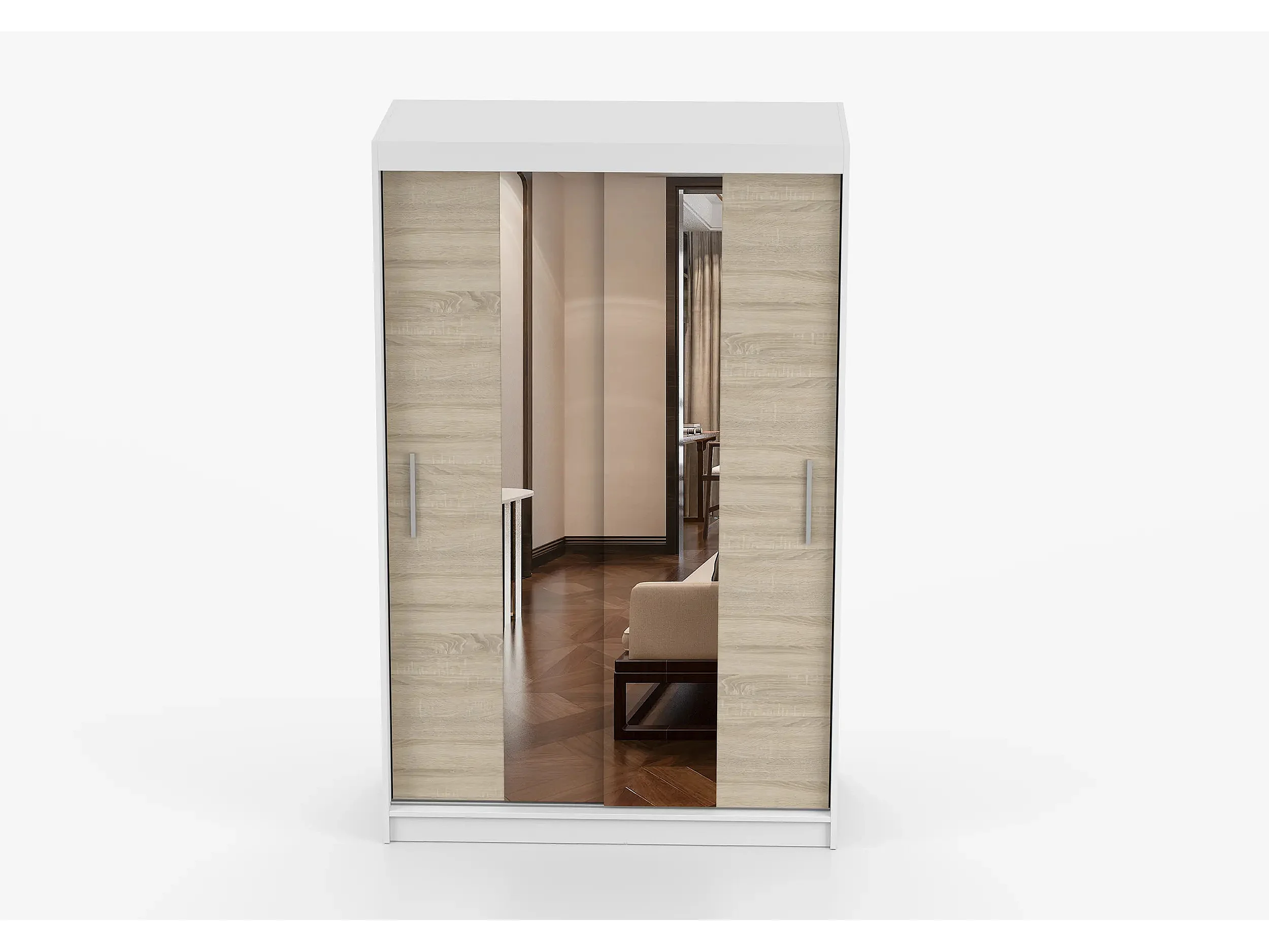 Armoire Danaé 120 cm avec miroir - Blanc - Chêne