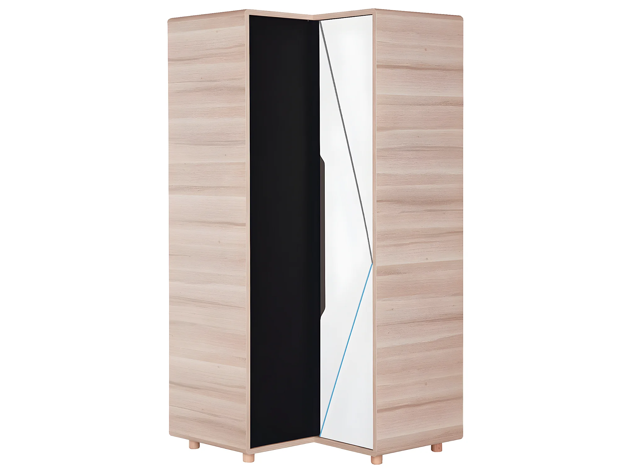 Armoire d'angle 2 portes Evolve Bois Blanc et Noir