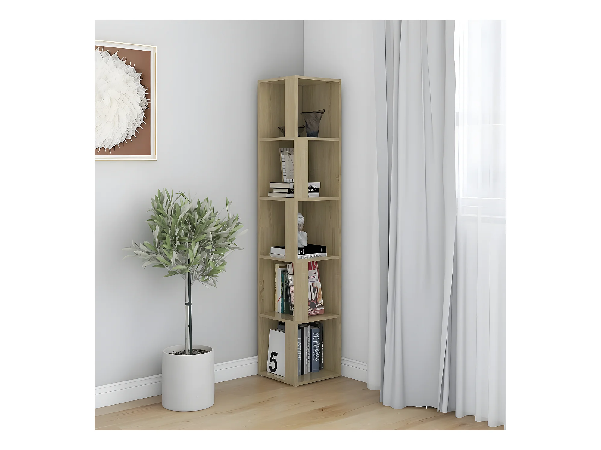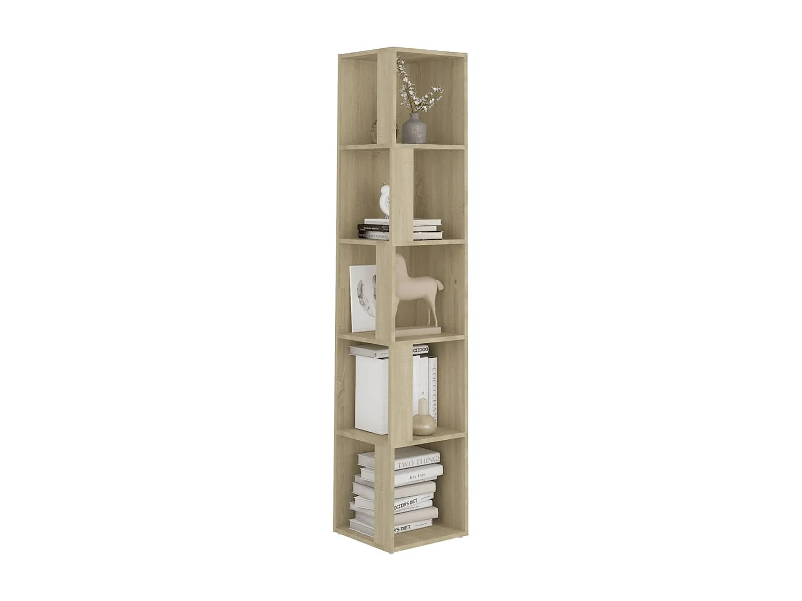 Meuble Étagère colonne 4 cases de rangement effet chêne naturel H 134 cm