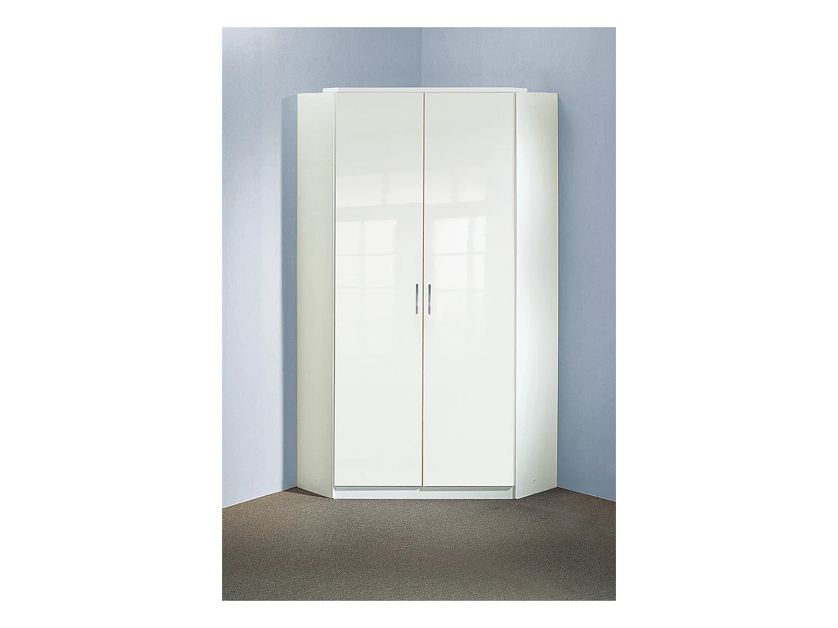 Armoire d‘angle, meuble de rangement coloris blanc cassé, blanc - L. 95 x H. 198 x P. 95 cm