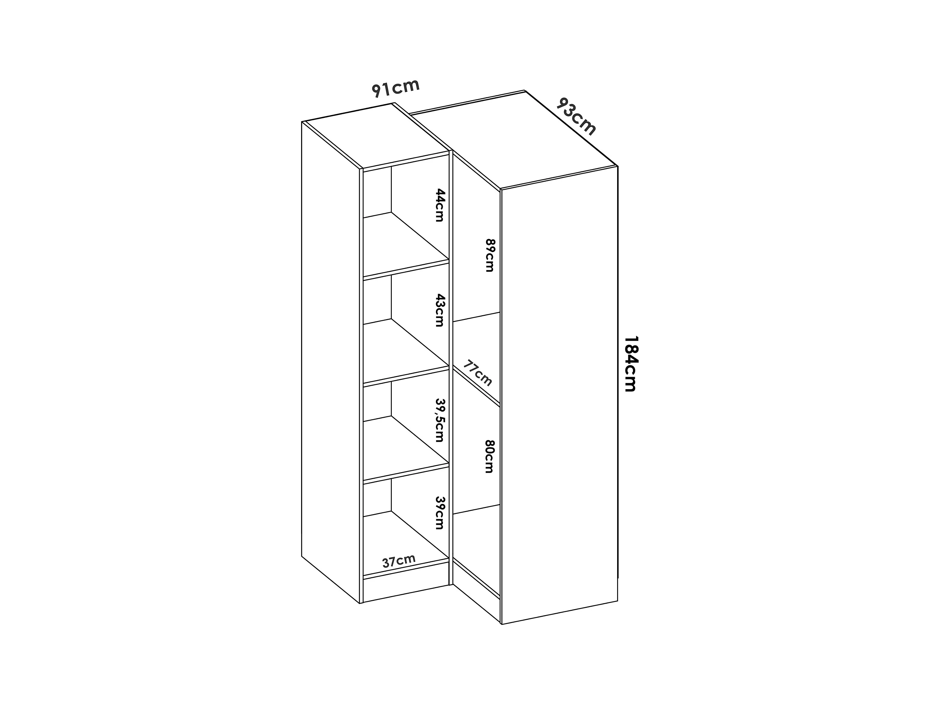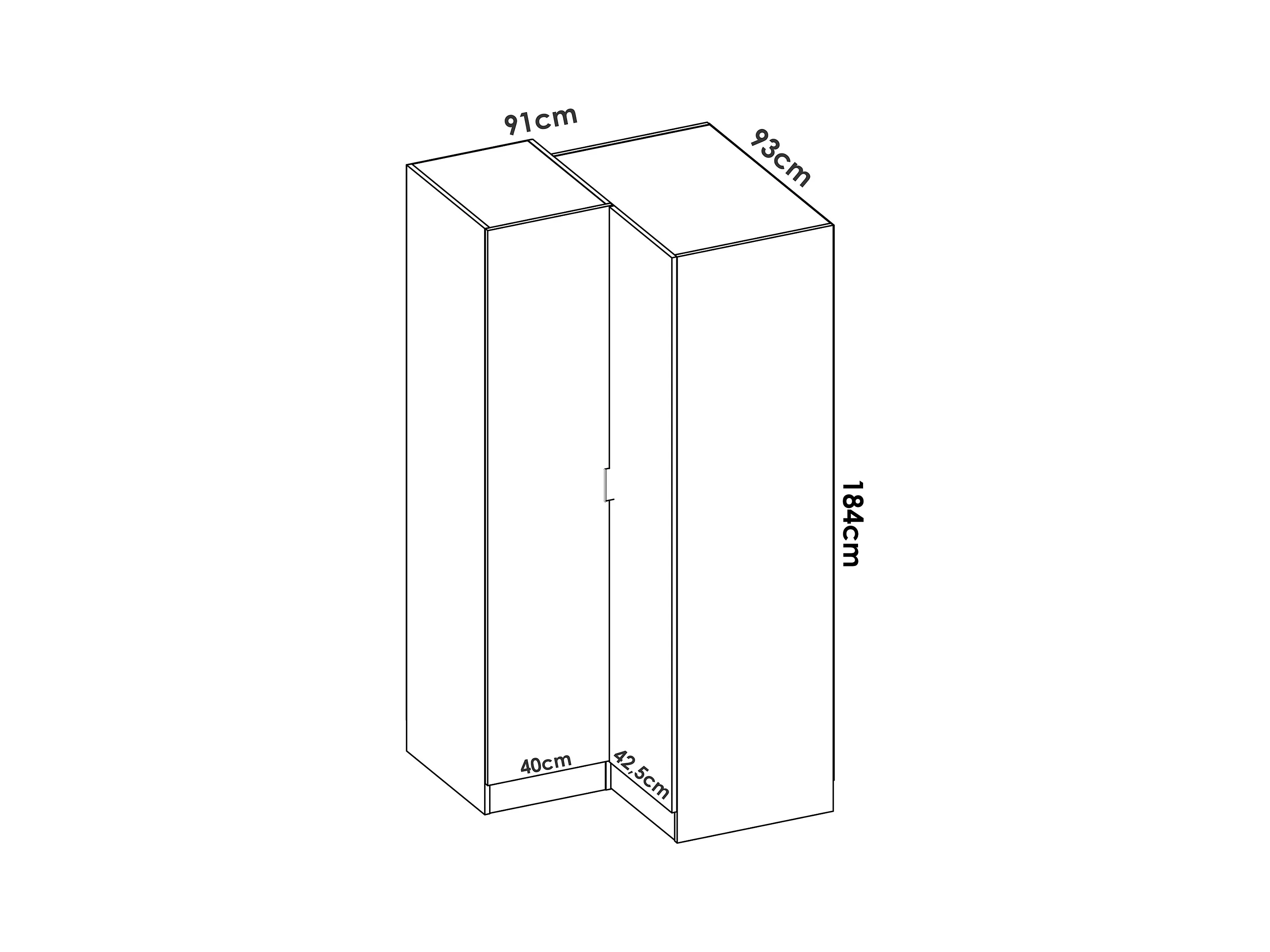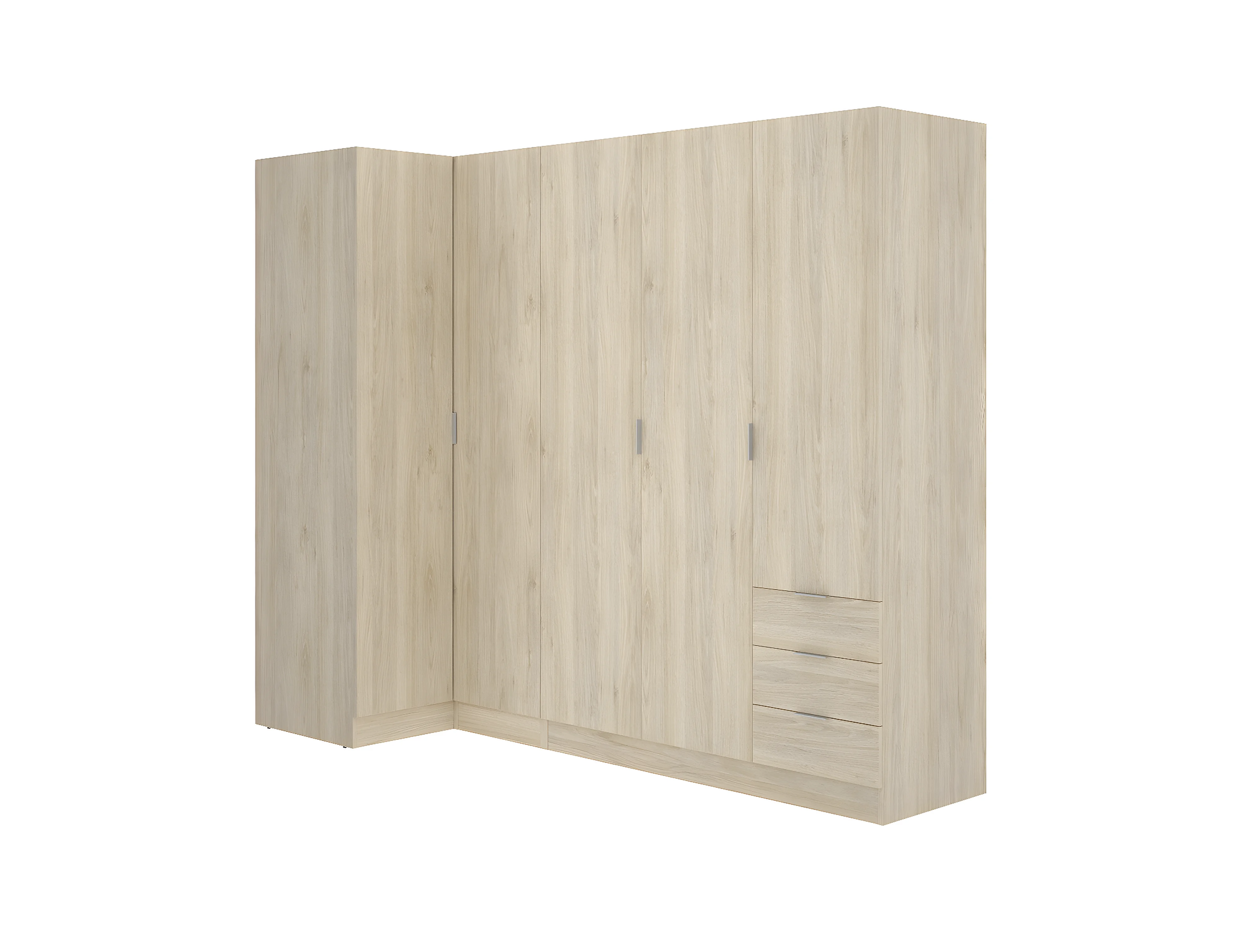 Armoire d'angle, meuble de rangement en bois mélaminé coloris chêne naturel - Longueur 213 x Profondeur 90 x Hauteur 184 cm