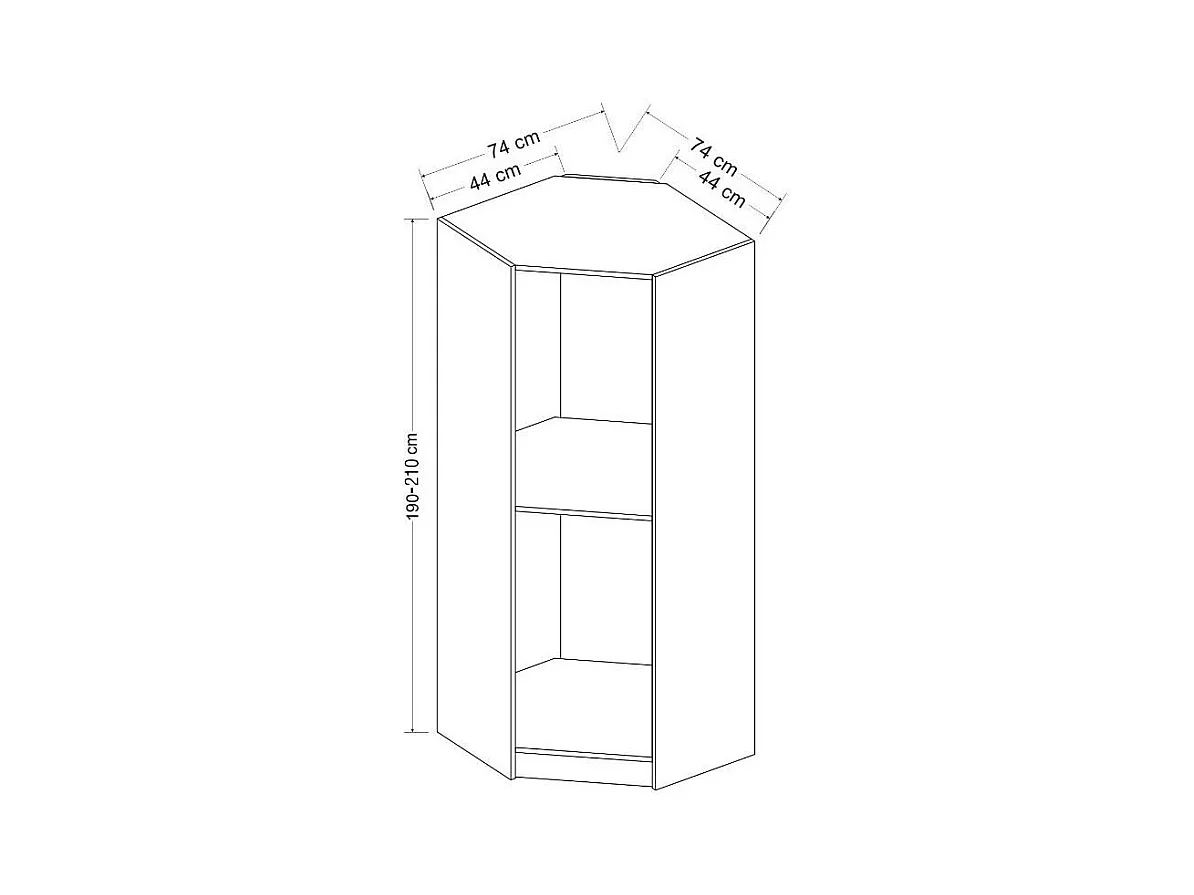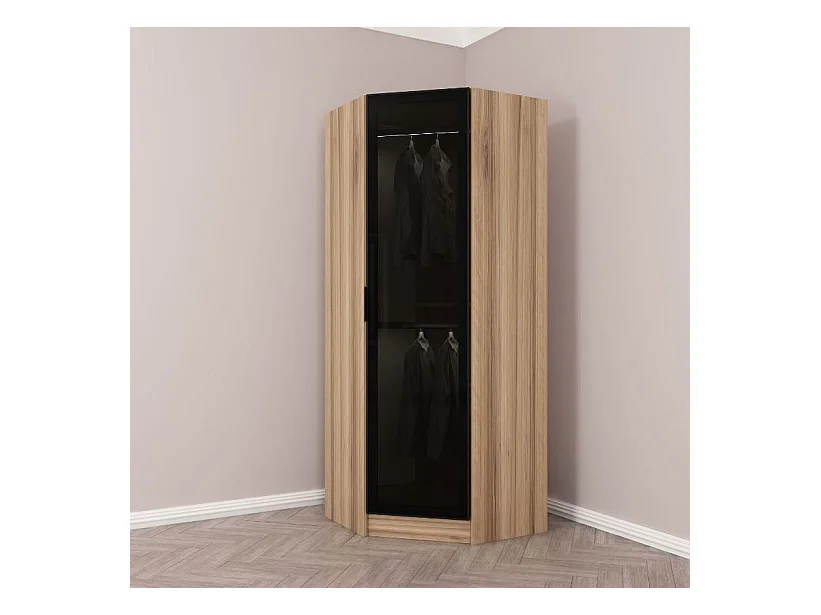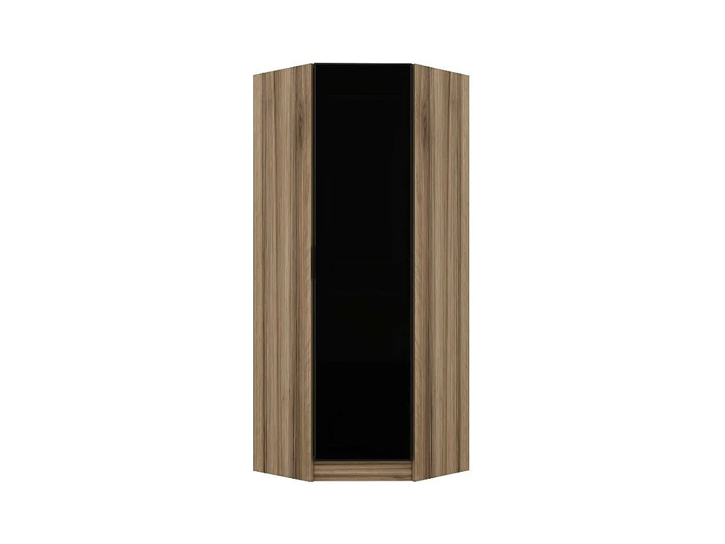 Armoire d'angle Noyer avec une porte en verre fumée 74 x 74 x 210 CM