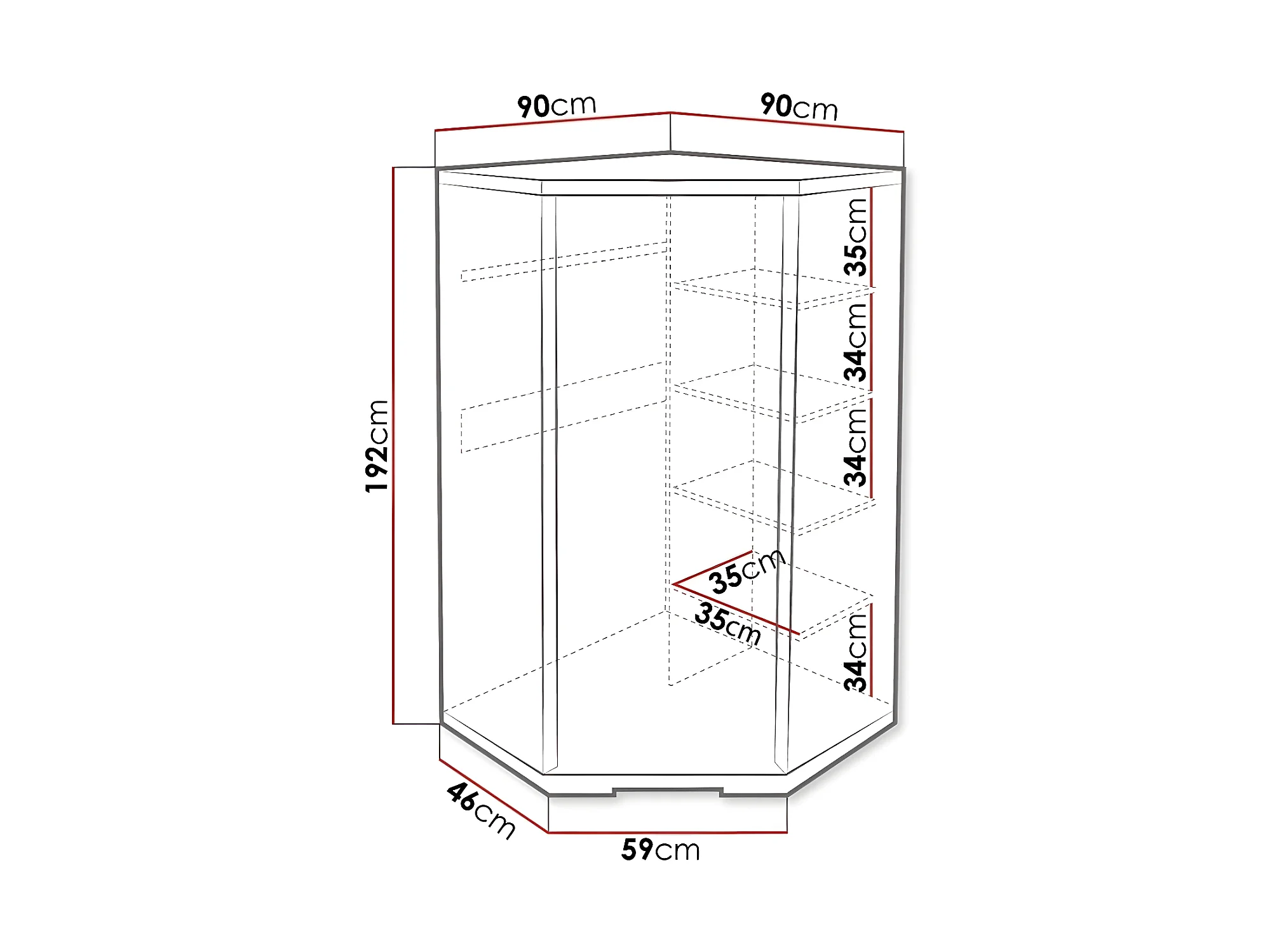 Armoire d'angle Fiomeri 126, Chêne santana, 192x90x90cm, Nombre d'étagères: 4