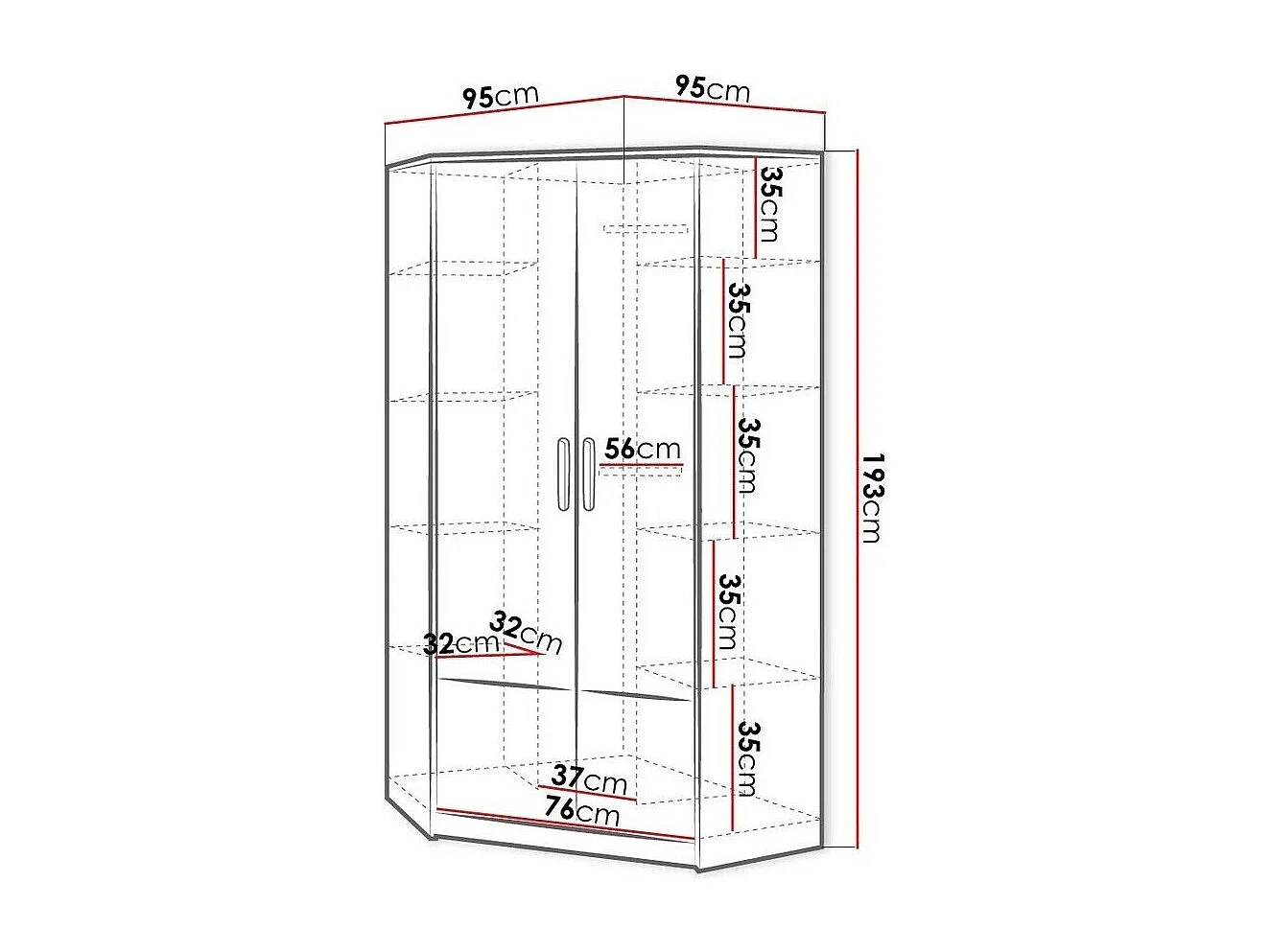 Armoire d'angle Veravie 102, Blanc|Gris clair|Graphite, 193x95x95cm, Nombre d'étagères: 8