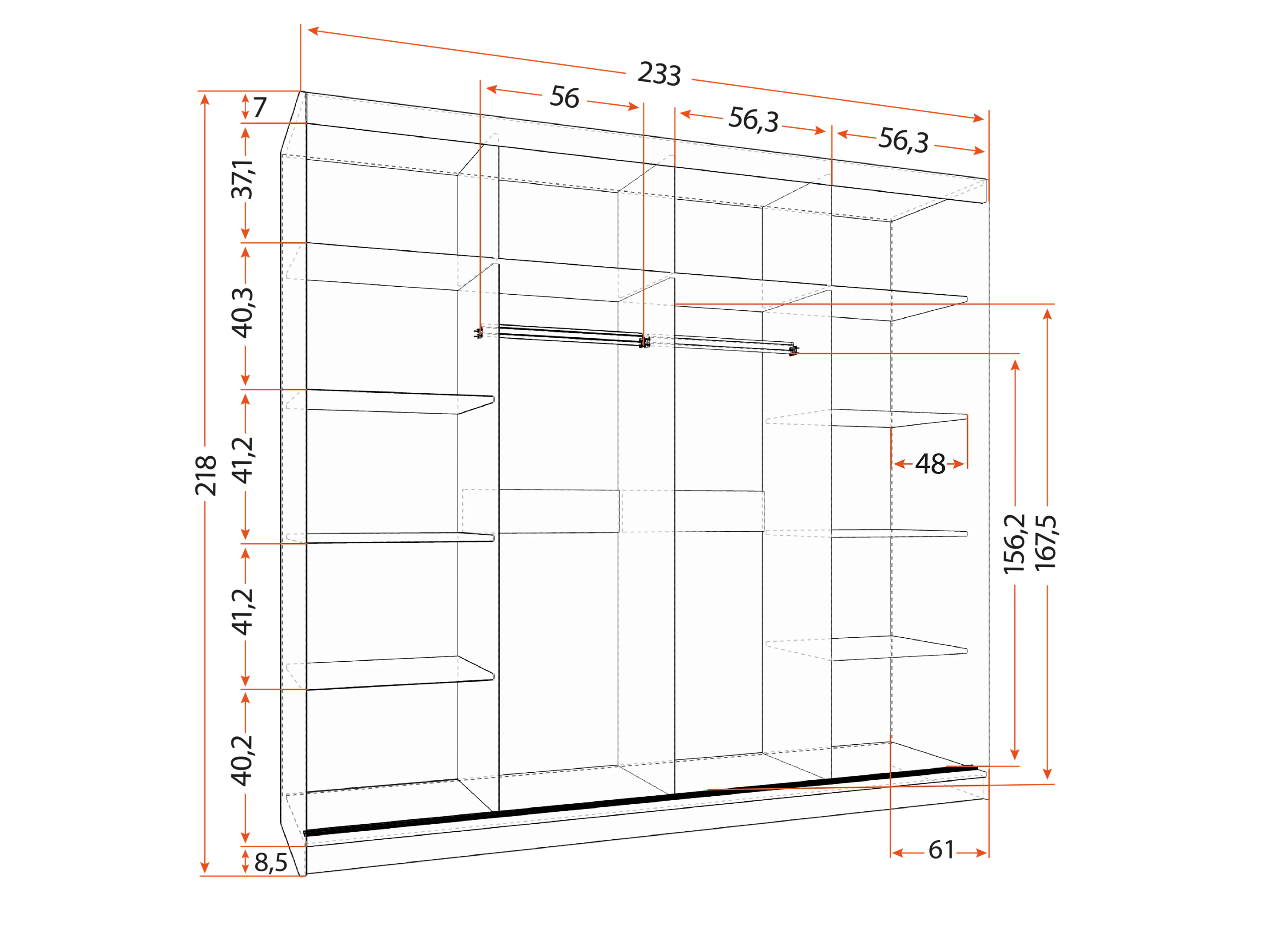 Armoire Daphnéa 233 cm avec miroir - Blanc