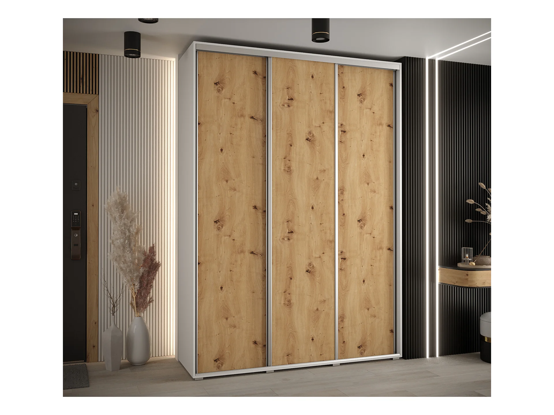 ARMOIRE DAVOS 1 À PORTES COULISSANTES 235,2/170/45 3 portes (Blanc/Artisan/Argent)