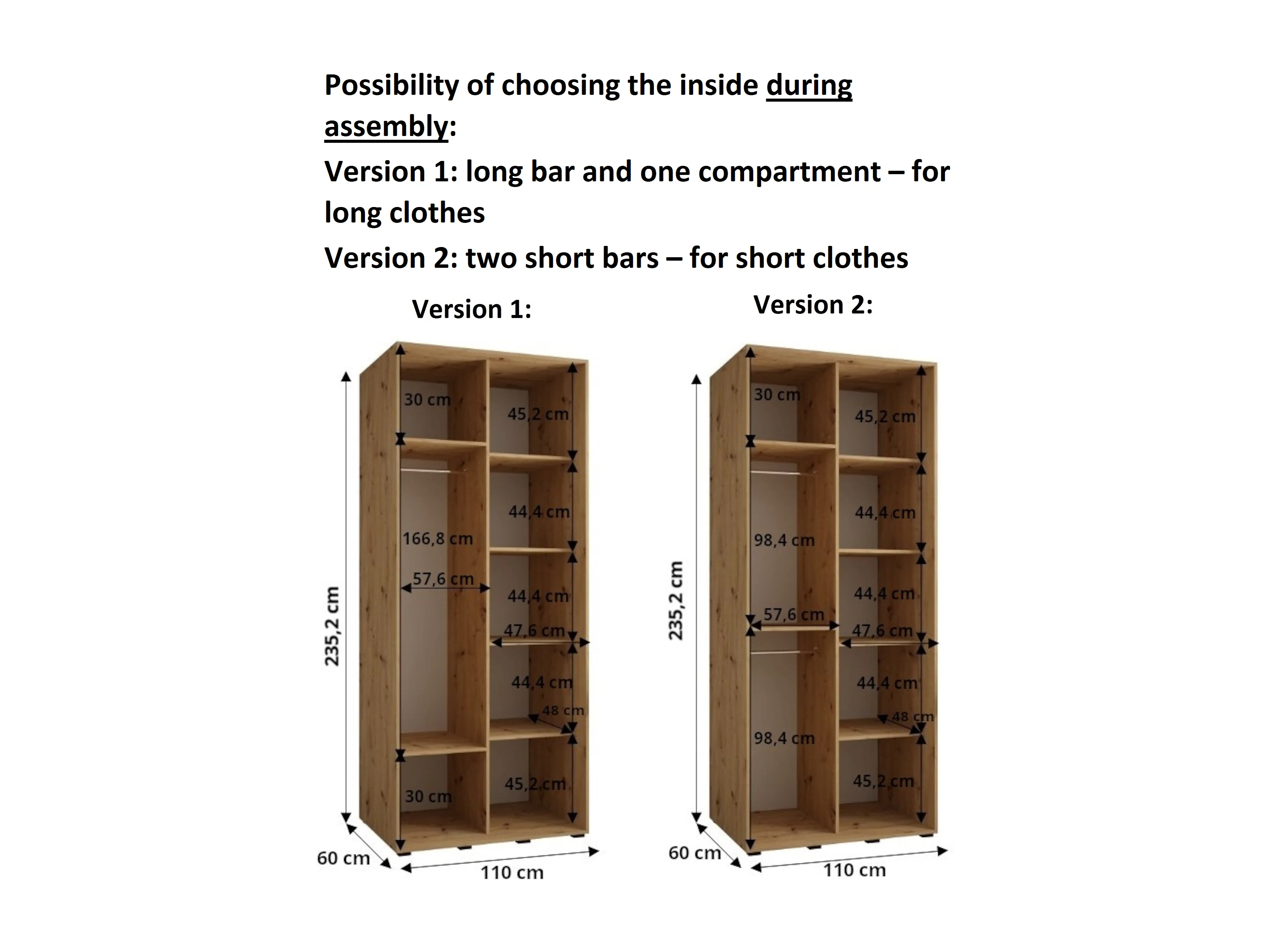 ARMOIRE DAVOS 4 À PORTES COULISSANTES 235,2/110/60 2 portes (Blanc/Artisan/Noir)