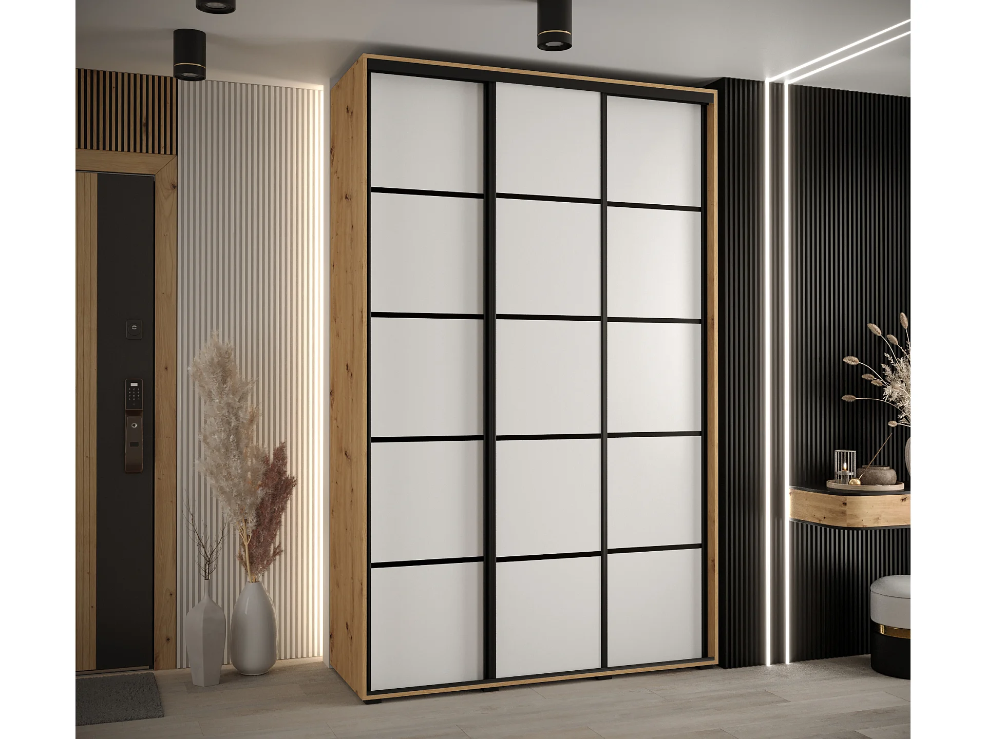ARMOIRE DAVOS 4 À PORTES COULISSANTES 235,2/150/45 3 portes (Artisan/Blanc/Noir)