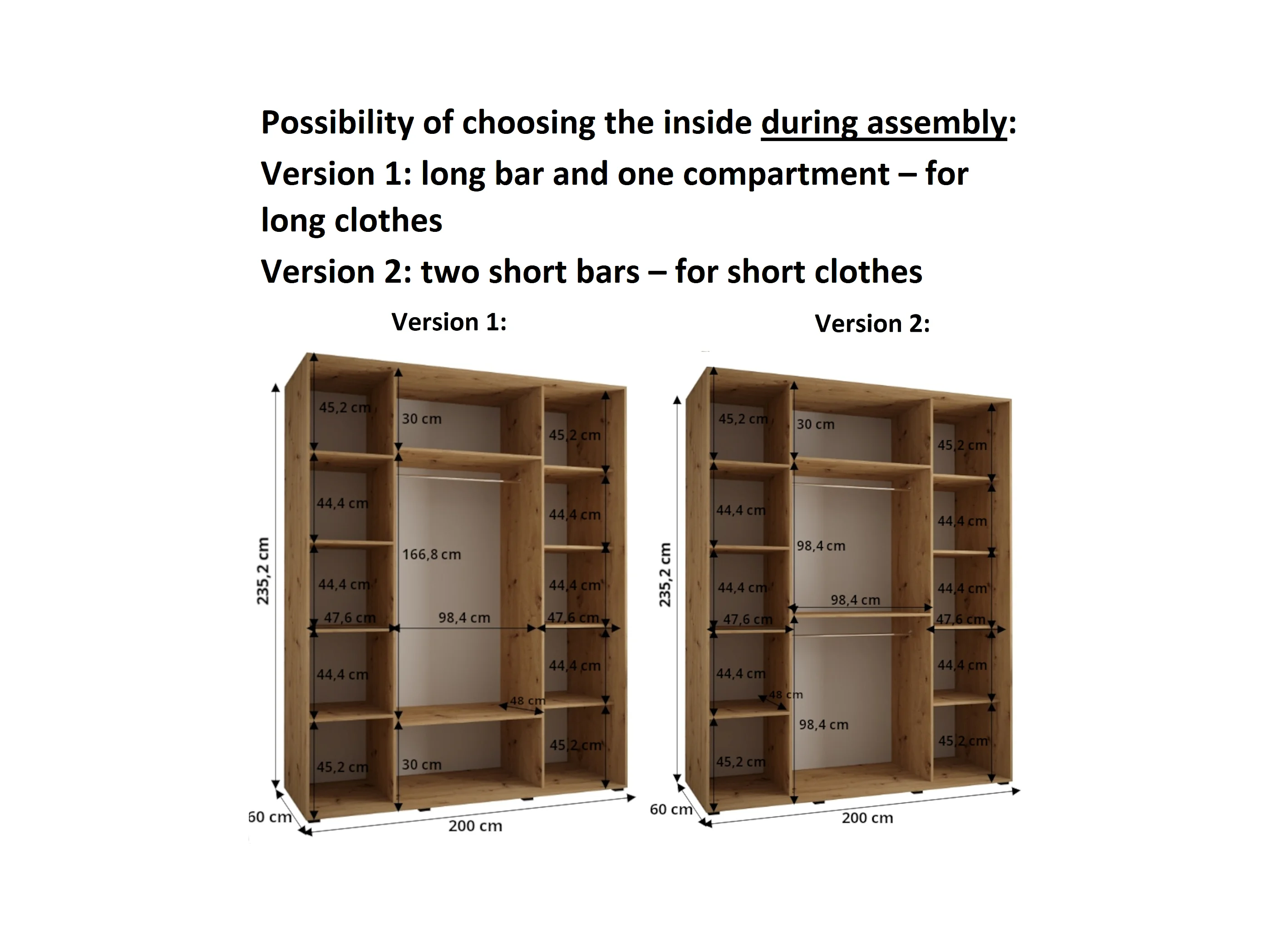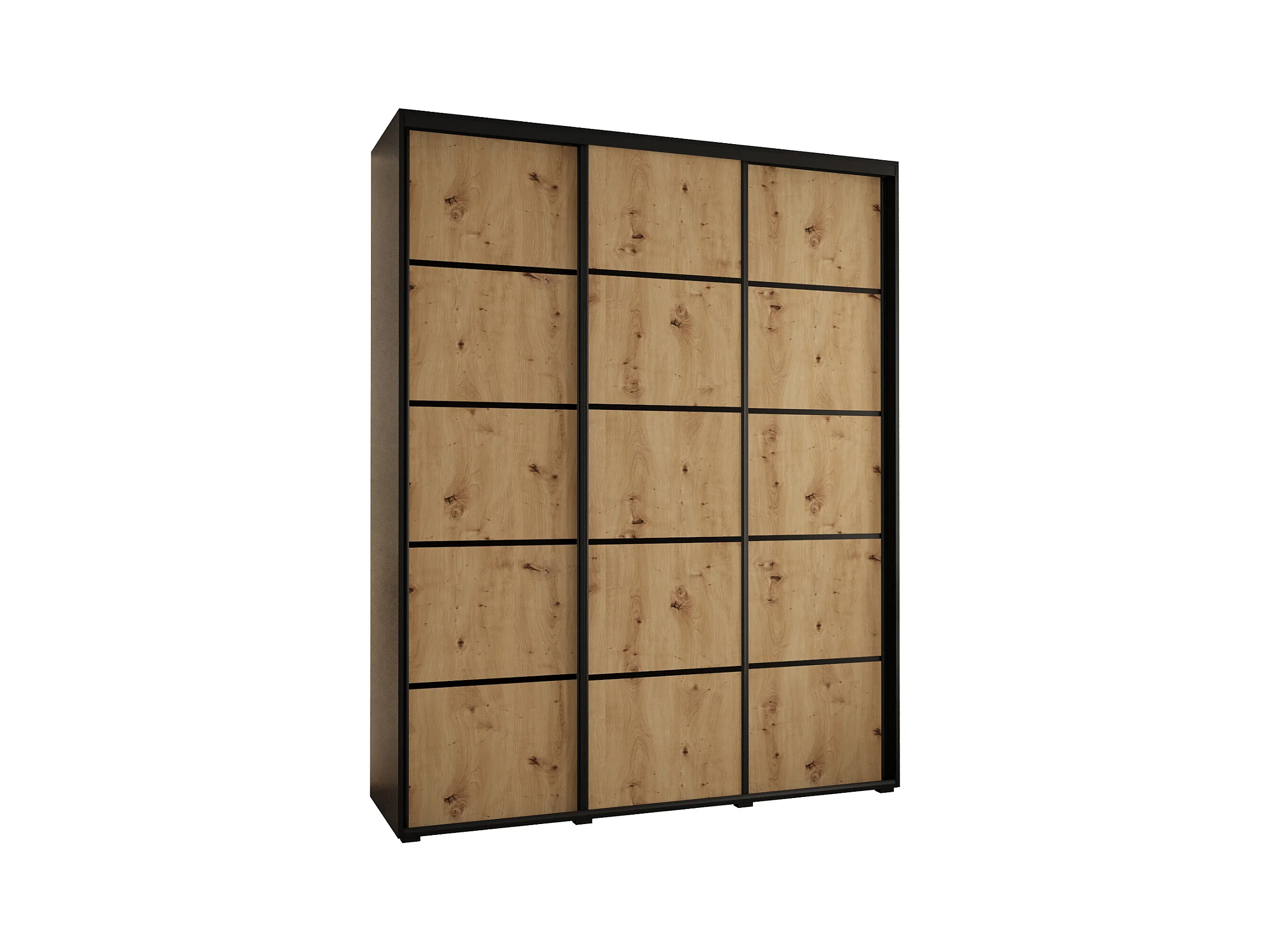 ARMOIRE DAVOS 4 À PORTES COULISSANTES 235,2/200/60 3 portes (Noir/Artisan/Noir)