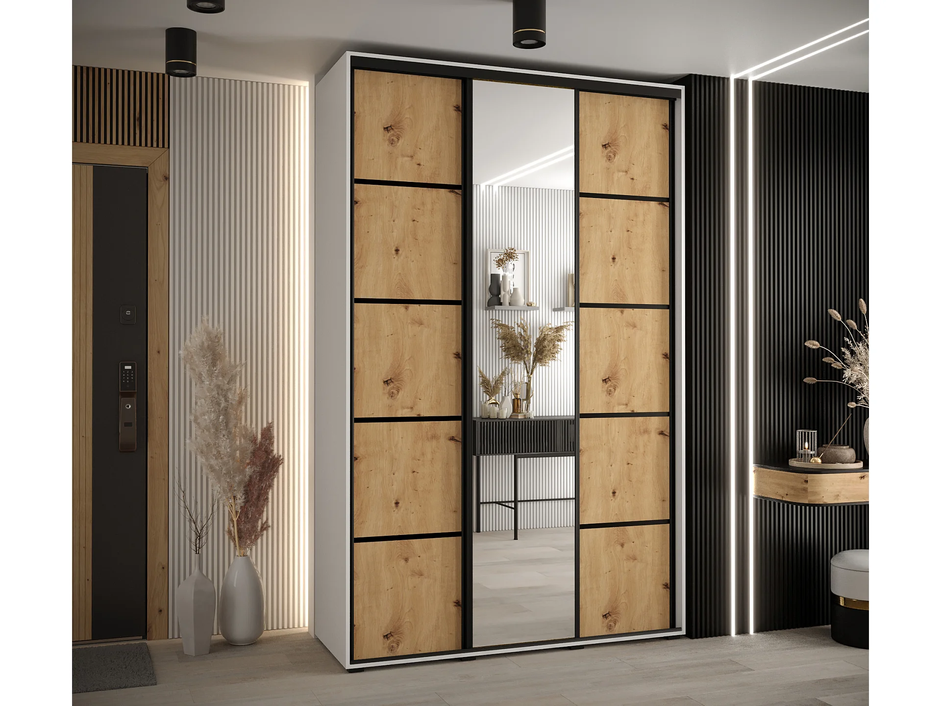 ARMOIRE DAVOS 5 À PORTES COULISSANTES 235,2/160/60 3 portes (Blanc/Artisan/Noir)