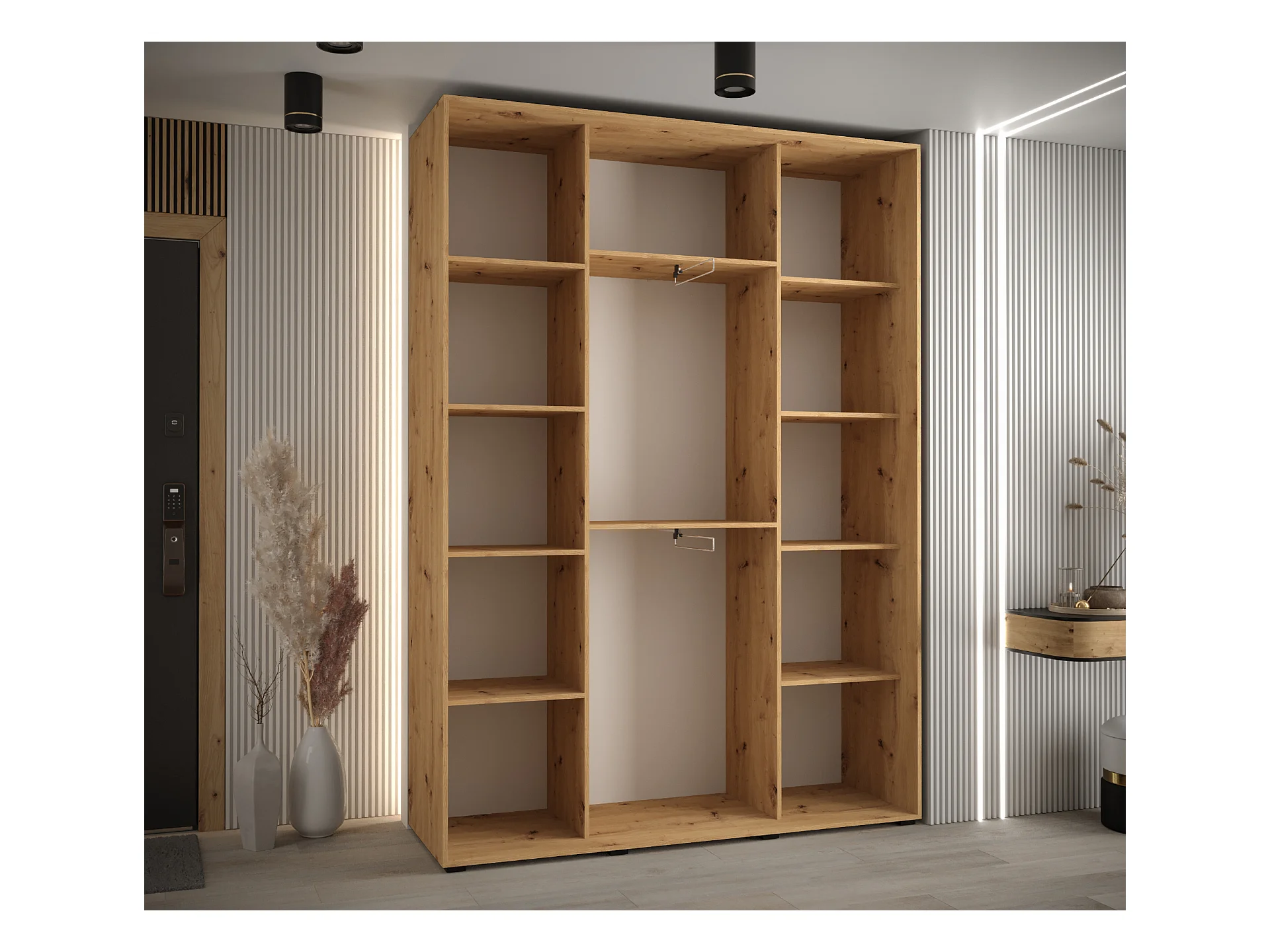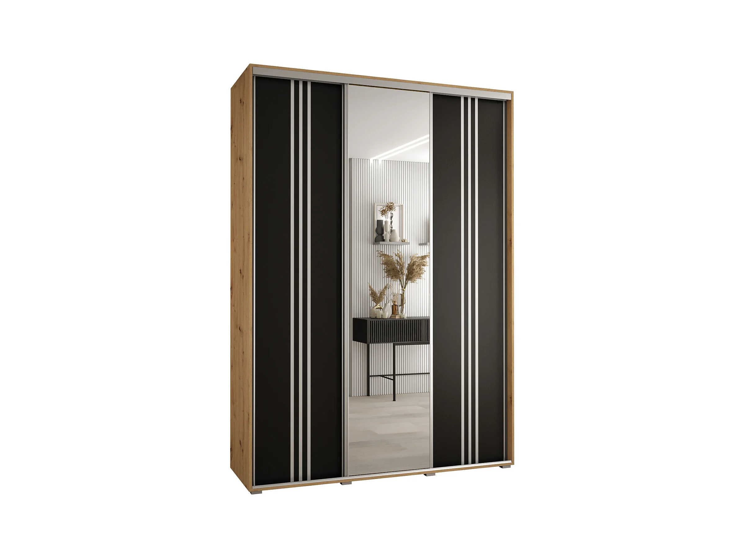 ARMOIRE DAVOS 7 À PORTES COULISSANTES 235,2/170/45 3 portes (Artisan/Noir/Argent)