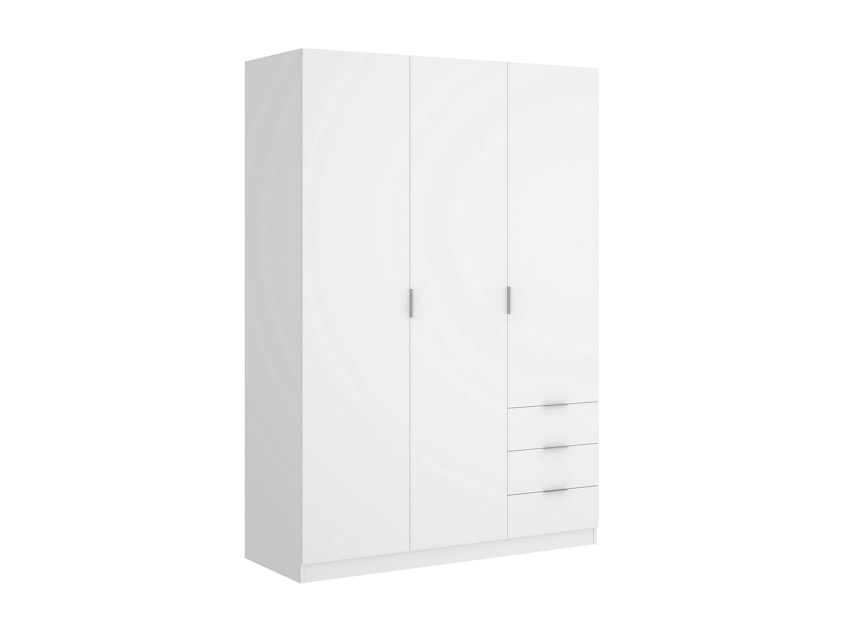 Armoire Dbarro, Cintre pour chambre à coucher, Armoire avec 3 portes battantes et 3 tiroirs, 121x52h184 cm, Blanc