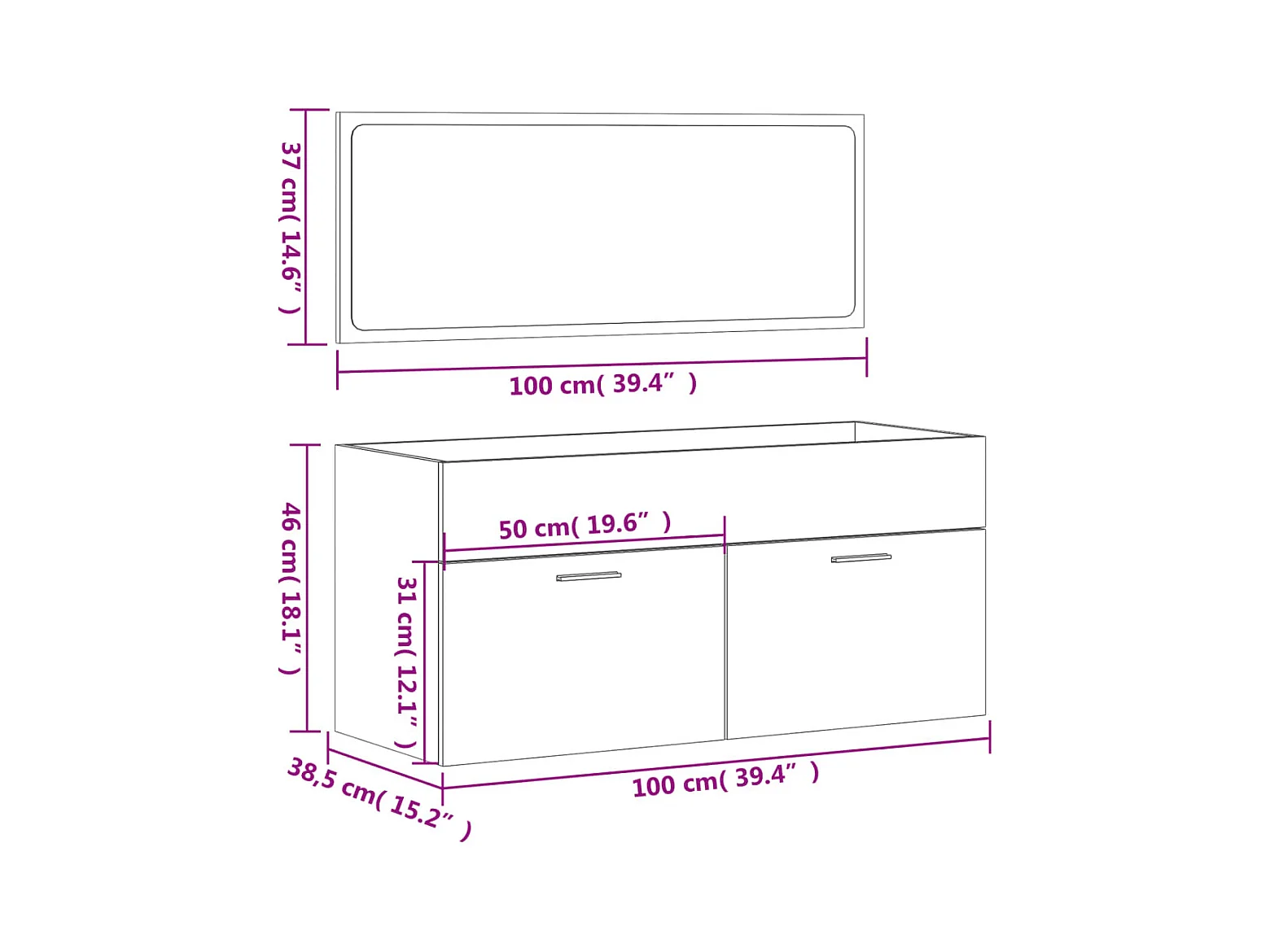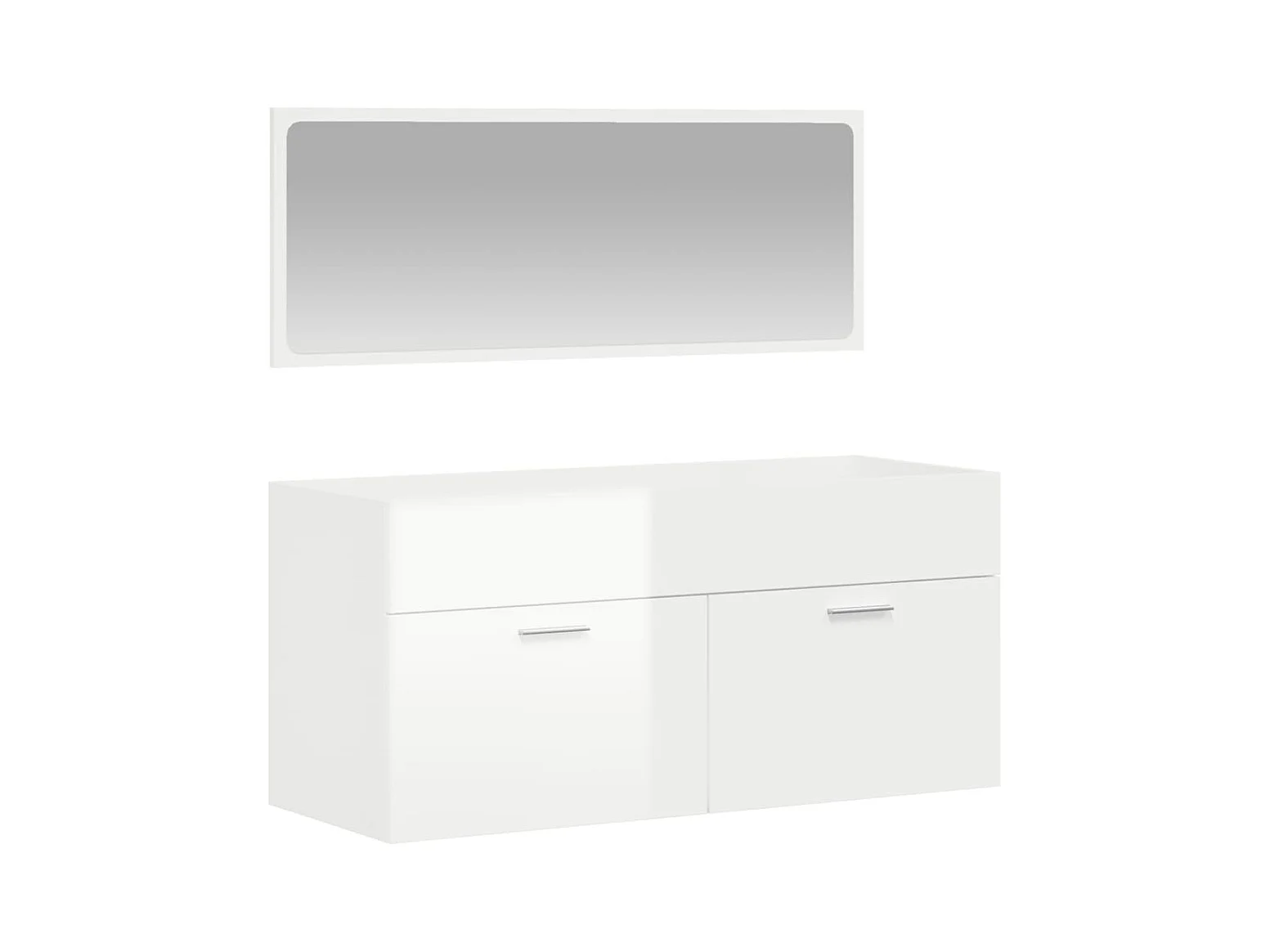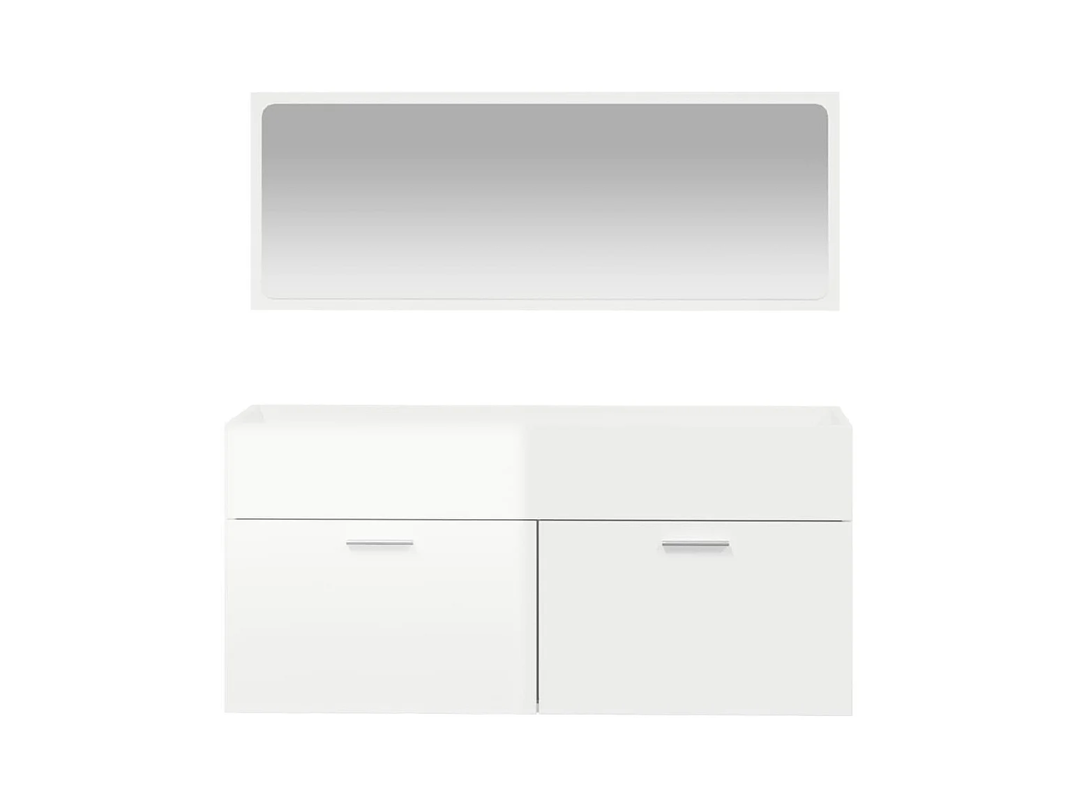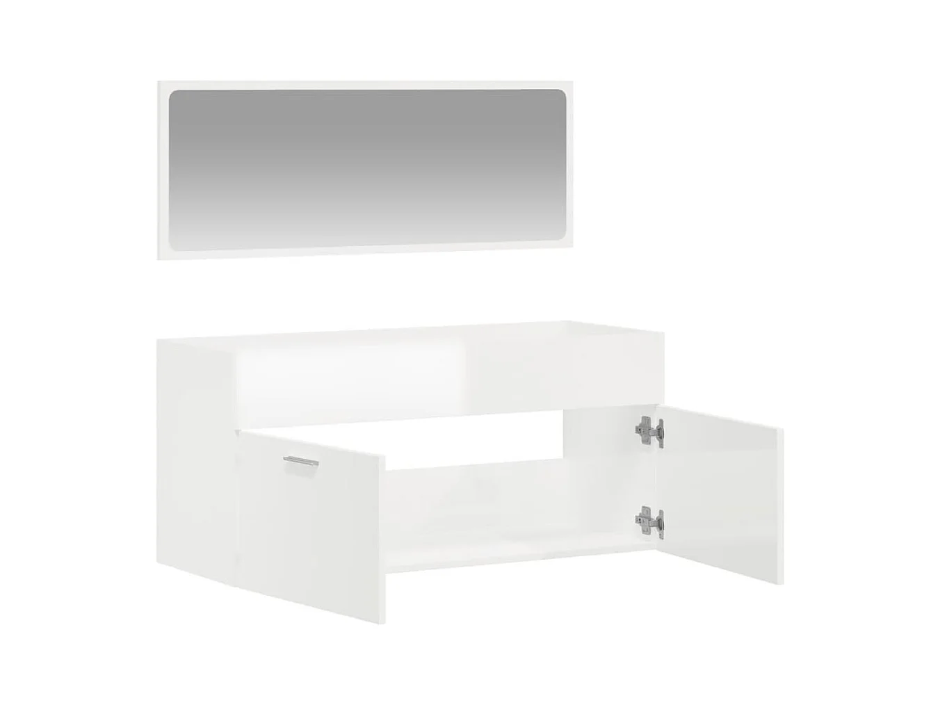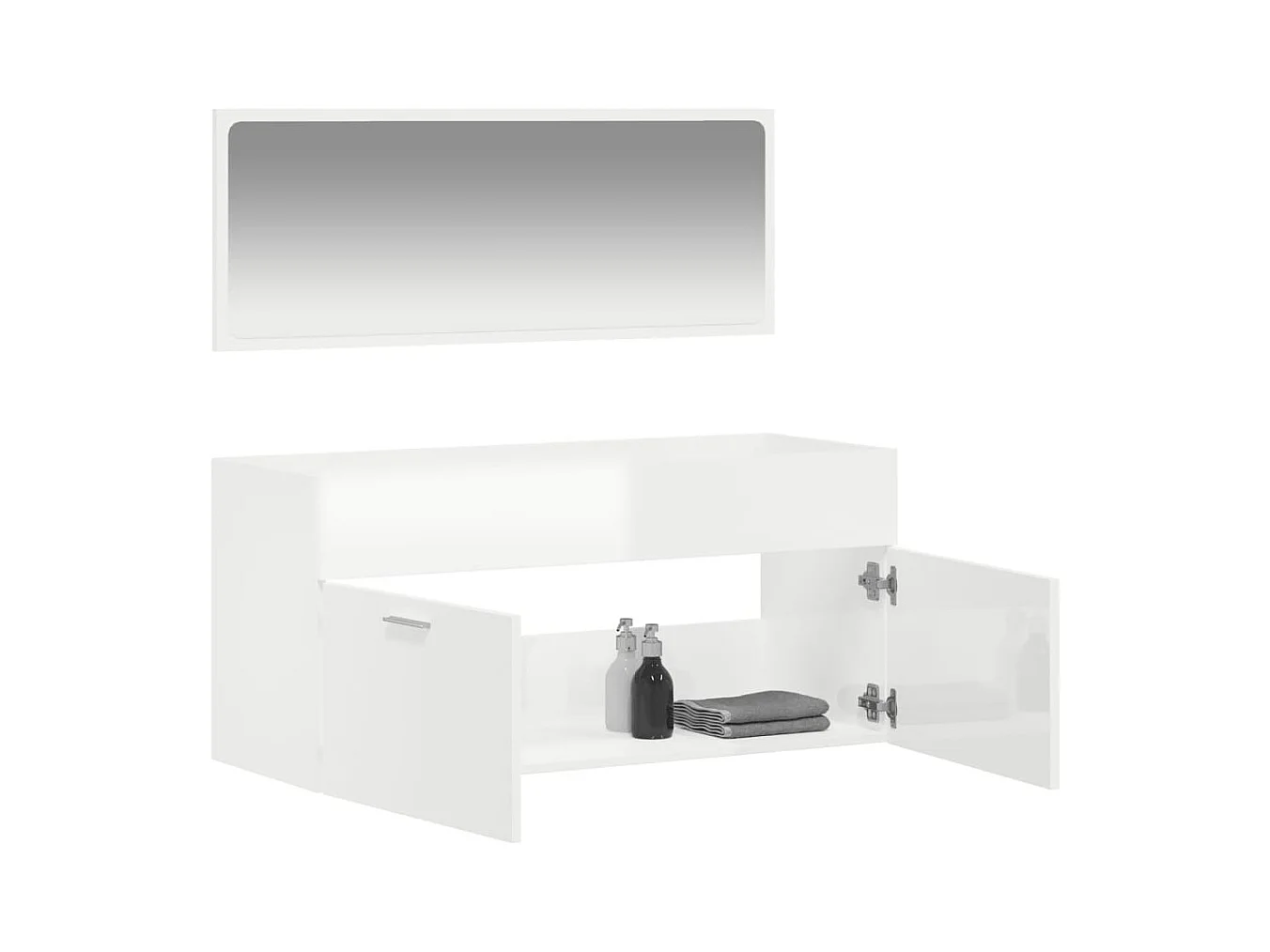 Armoire de bain avec miroir blanc brillant bois d'ingénierie