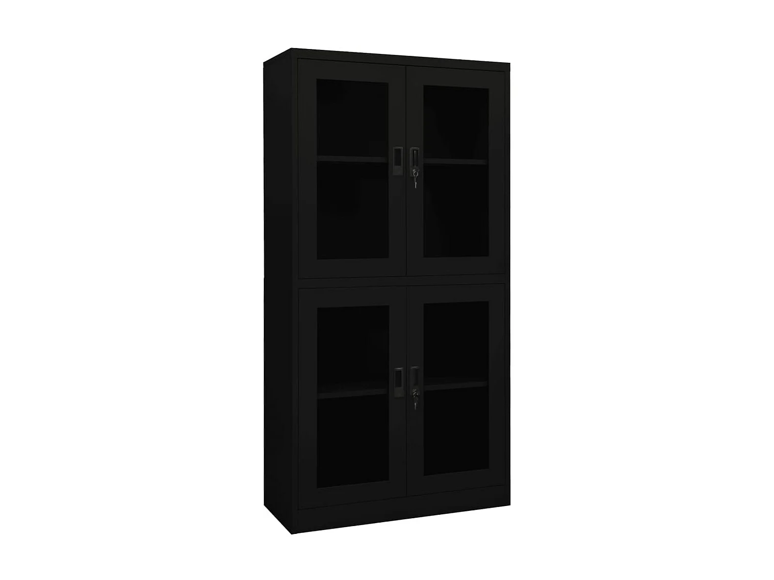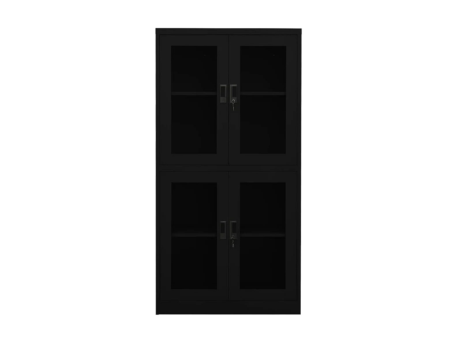 Armoire de bureau Noir 90x40x180 Acier et verre trempé 2