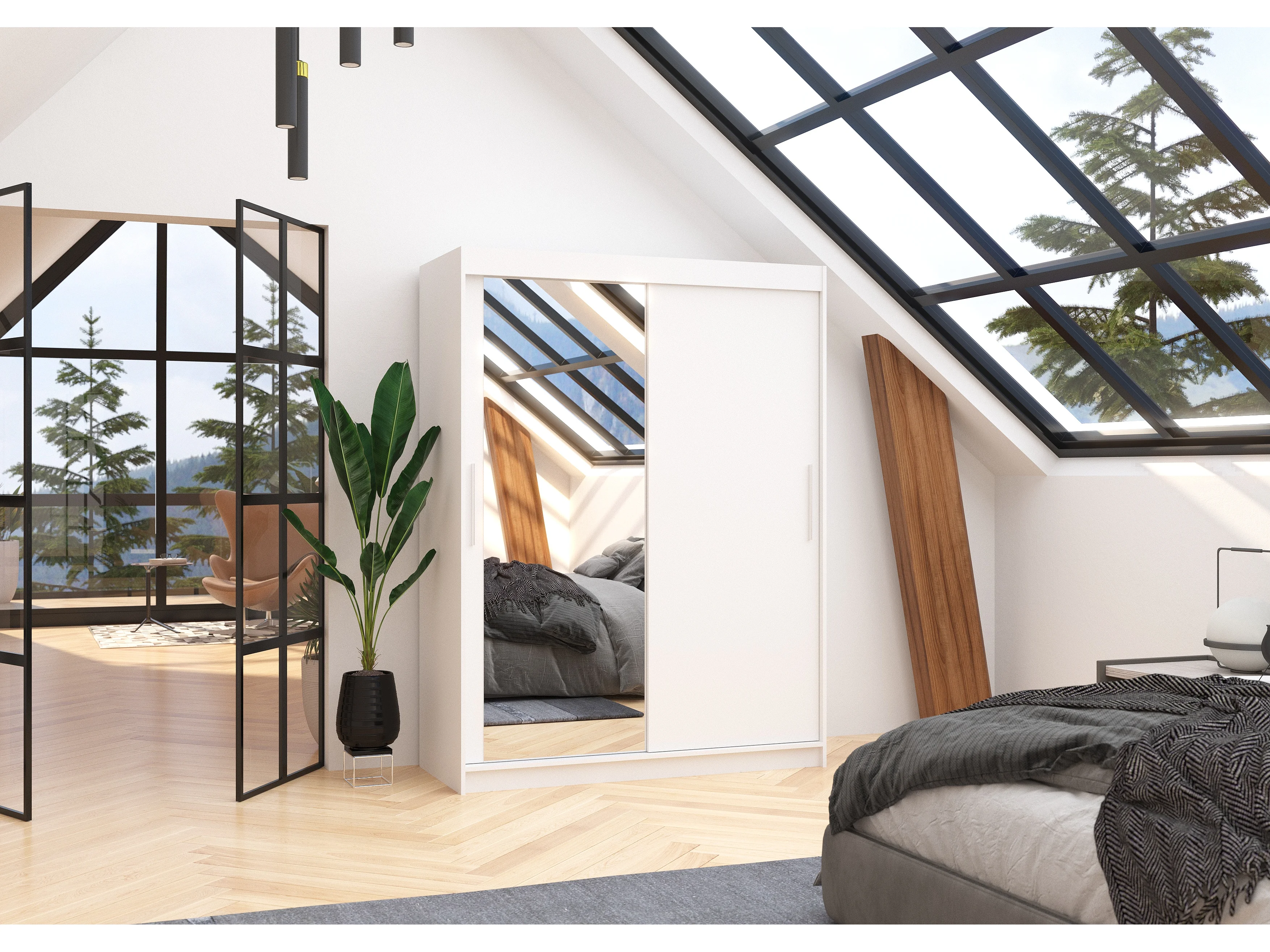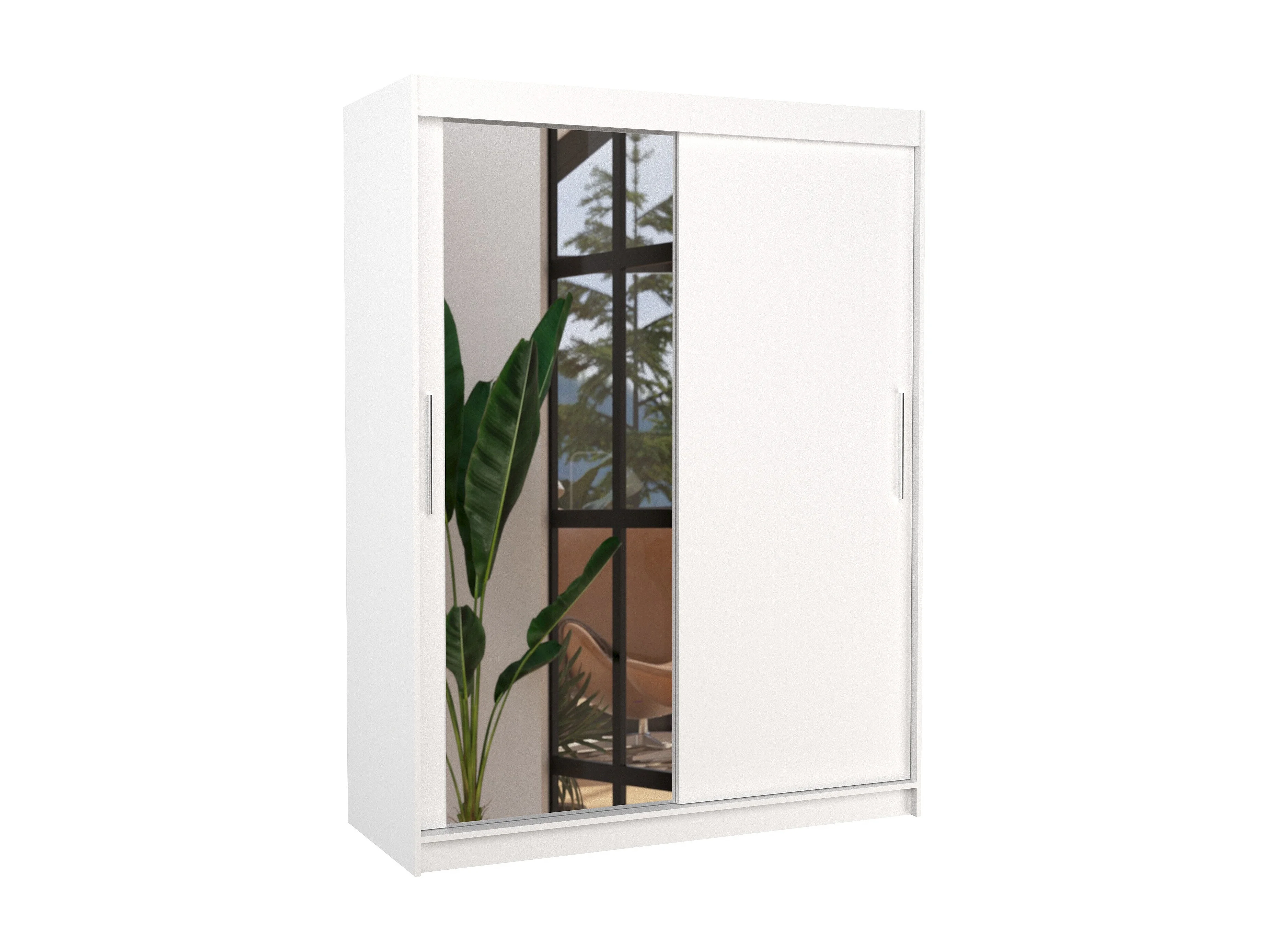 Armoire de chambre 2 portes coulissantes 1 blanche 1 miroir Bianky 150cm