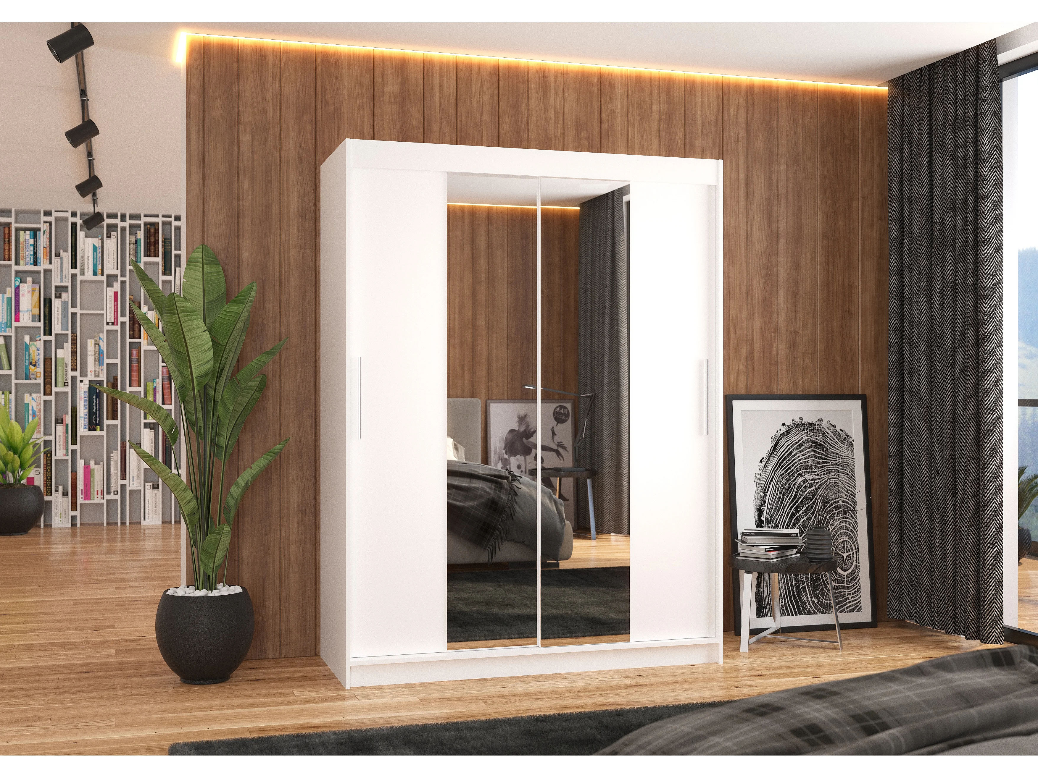 Armoire de chambre 2 portes coulissantes bois blanc et miroir Linoa 150cm
