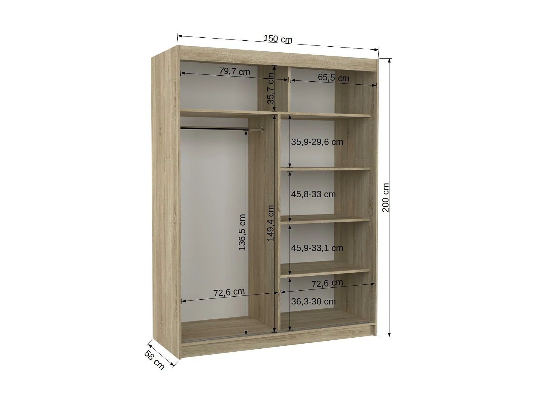 Armoire de chambre blanche 2 portes coulissantes avec miroir Prima 150cm