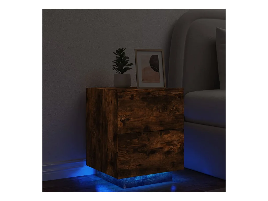 Table de chevet avec lumières LED chêne fumé 50x40x45