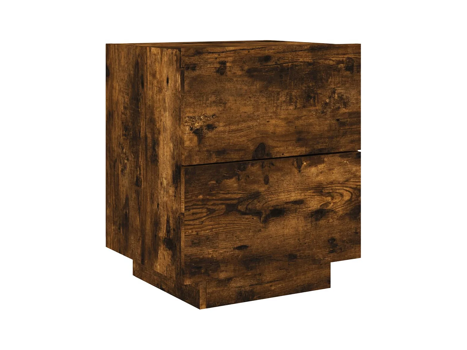 Armoire de chevet et lumières LED chêne fumé bois d'ingénierie
