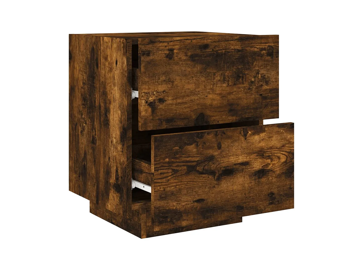 Armoires de chevet et lumières LED 2 pcs chêne fumé