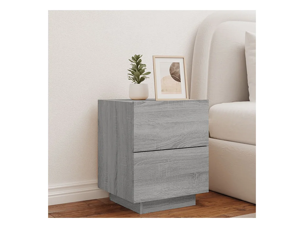 Armoire de chevet et lumières LED sonoma gris bois d'ingénierie