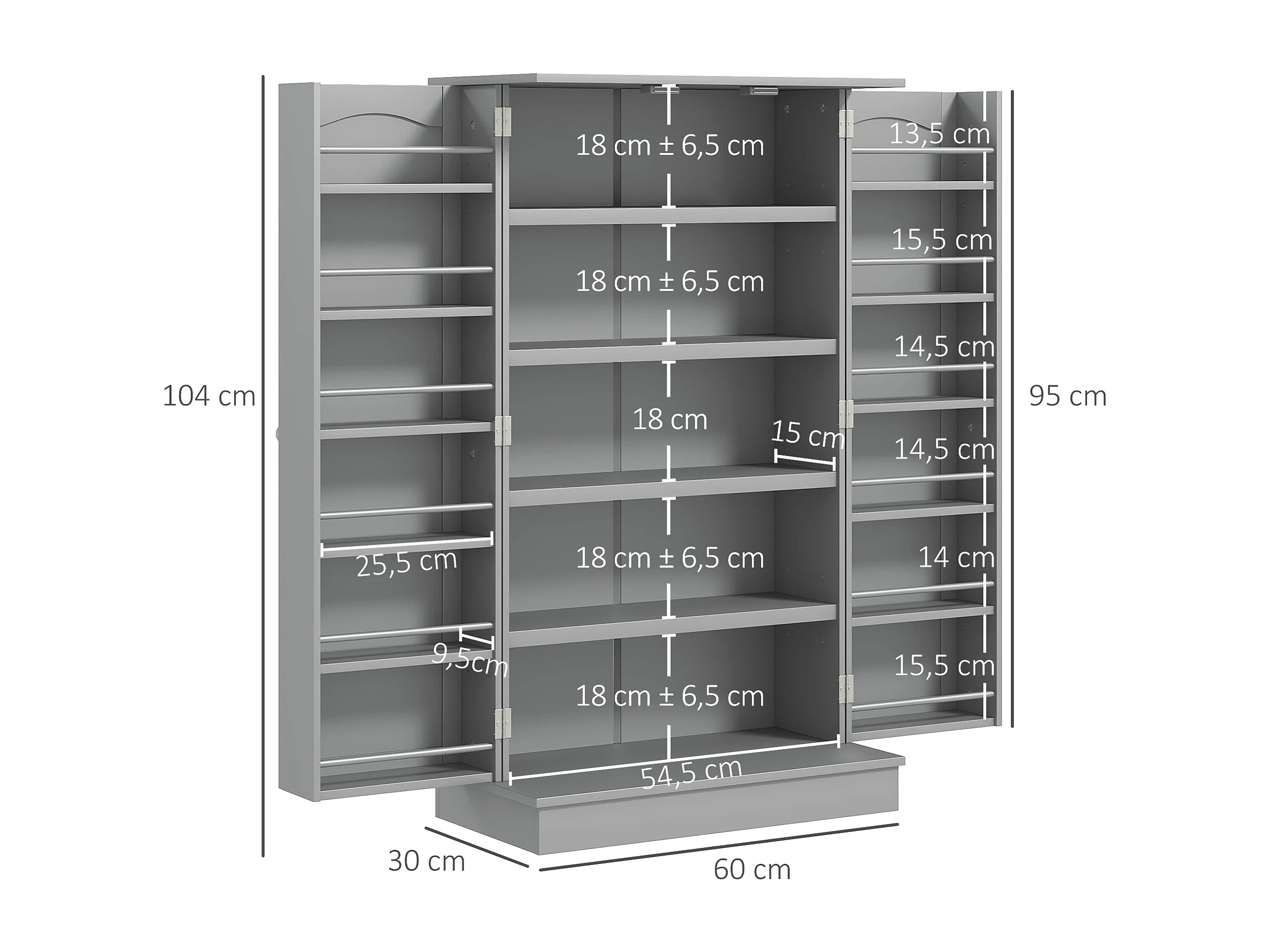Armoire de cuisine rangement épices 2 portes 4 étagères 12 porte-épices dim. 60 x 30 x 104 cm gris