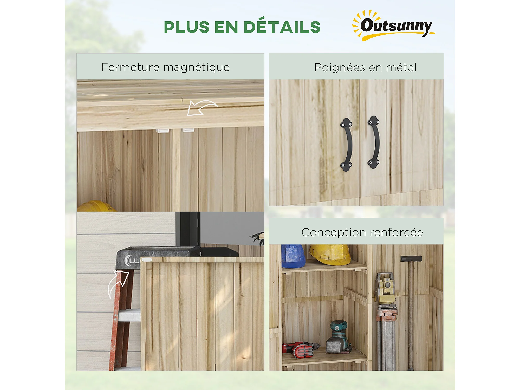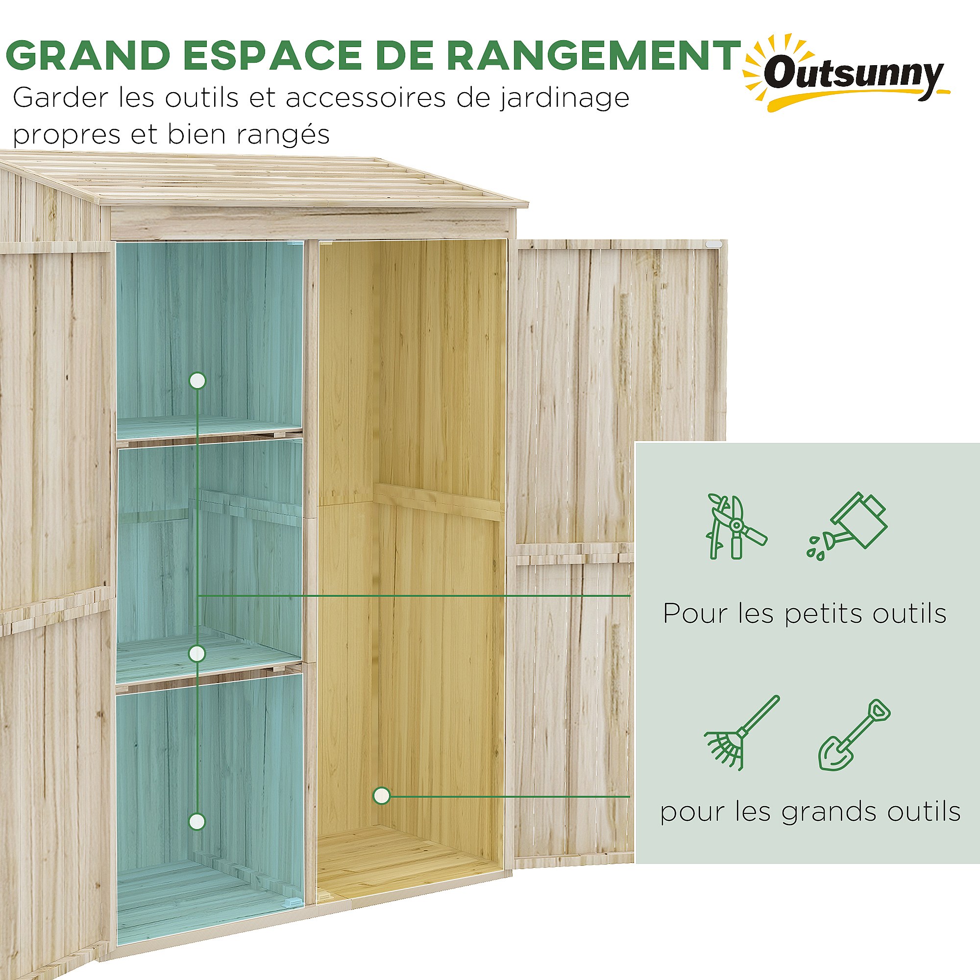 Armoire de jardin 2 portes bois - 2 étagères, grand compartiment - 120 x 57 x 183 cm - sapin pré-huilé